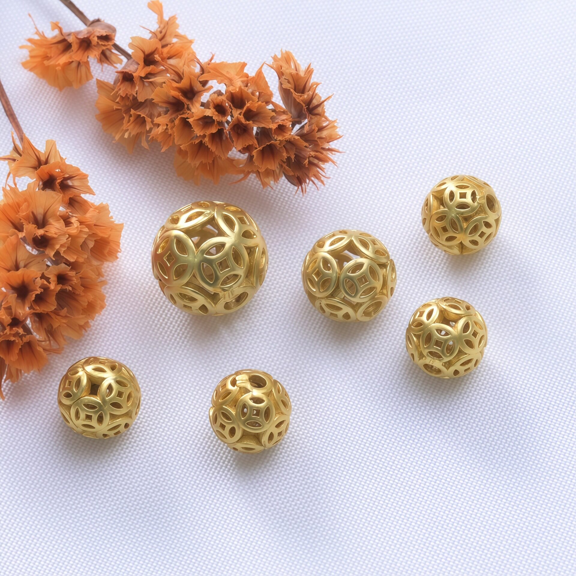 📚 沙金包金保色花式镂空绣花珠花球铜钱梵文diy串珠手链项链饰配件