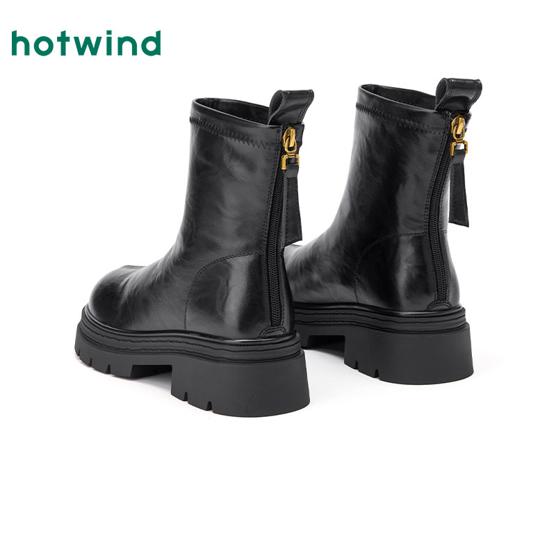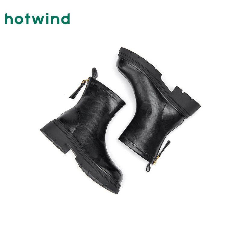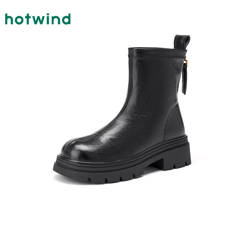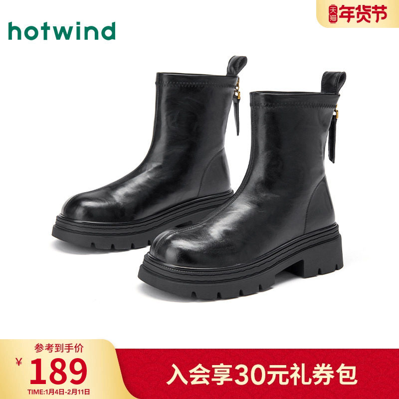 📚 热风厚底时装靴女2025年冬季新款百搭黑色短靴小个子增高靴子女鞋
