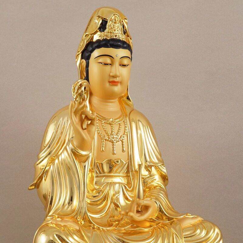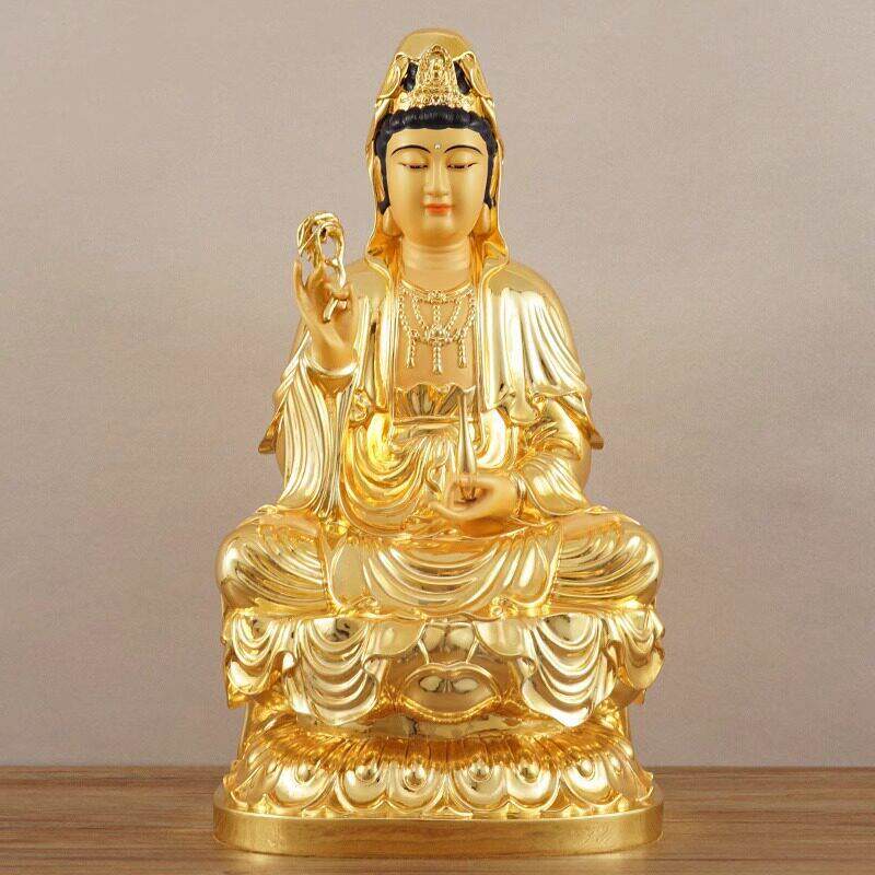📚 纯铜观音菩萨佛像家用供奉南海观世音菩萨娑婆三圣像观音佛像摆件