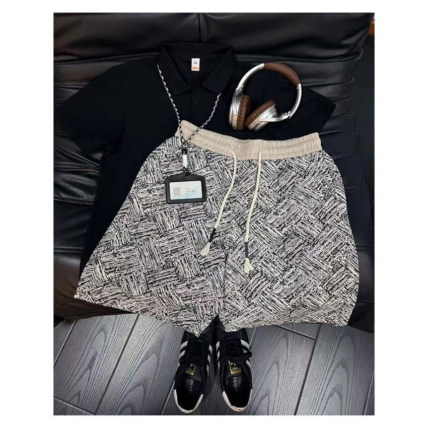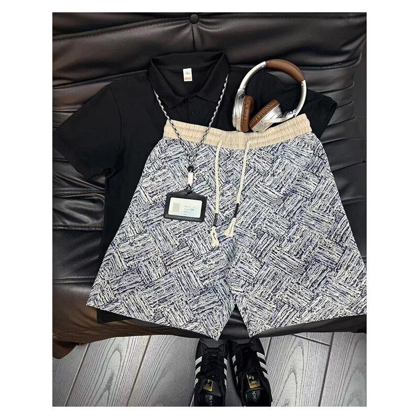 📚 网图 YK86208-TP25 100%聚酯纤维 美式复古油画风短裤男夏季