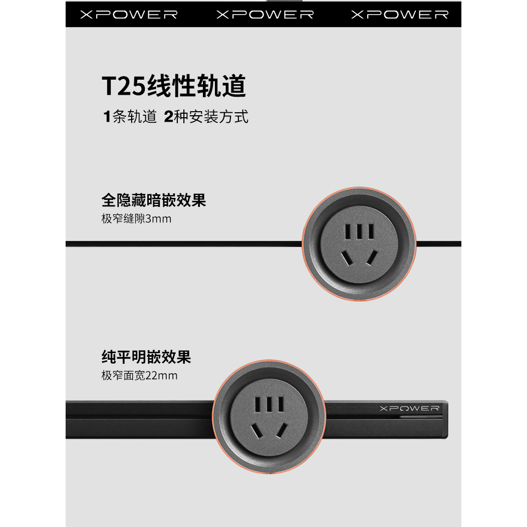 📚 【新定制】XPOWER艾宝沃隐形隐藏超薄极窄极简嵌入线性轨道插座