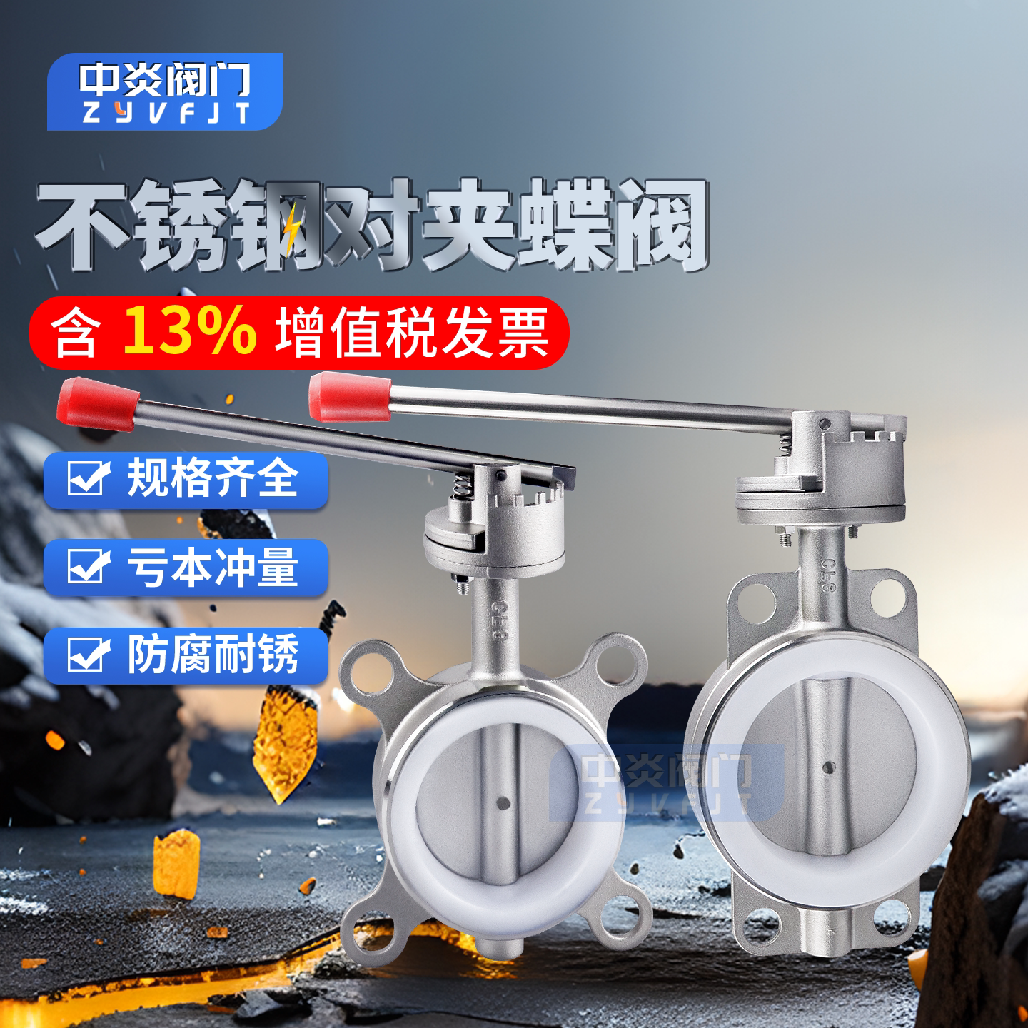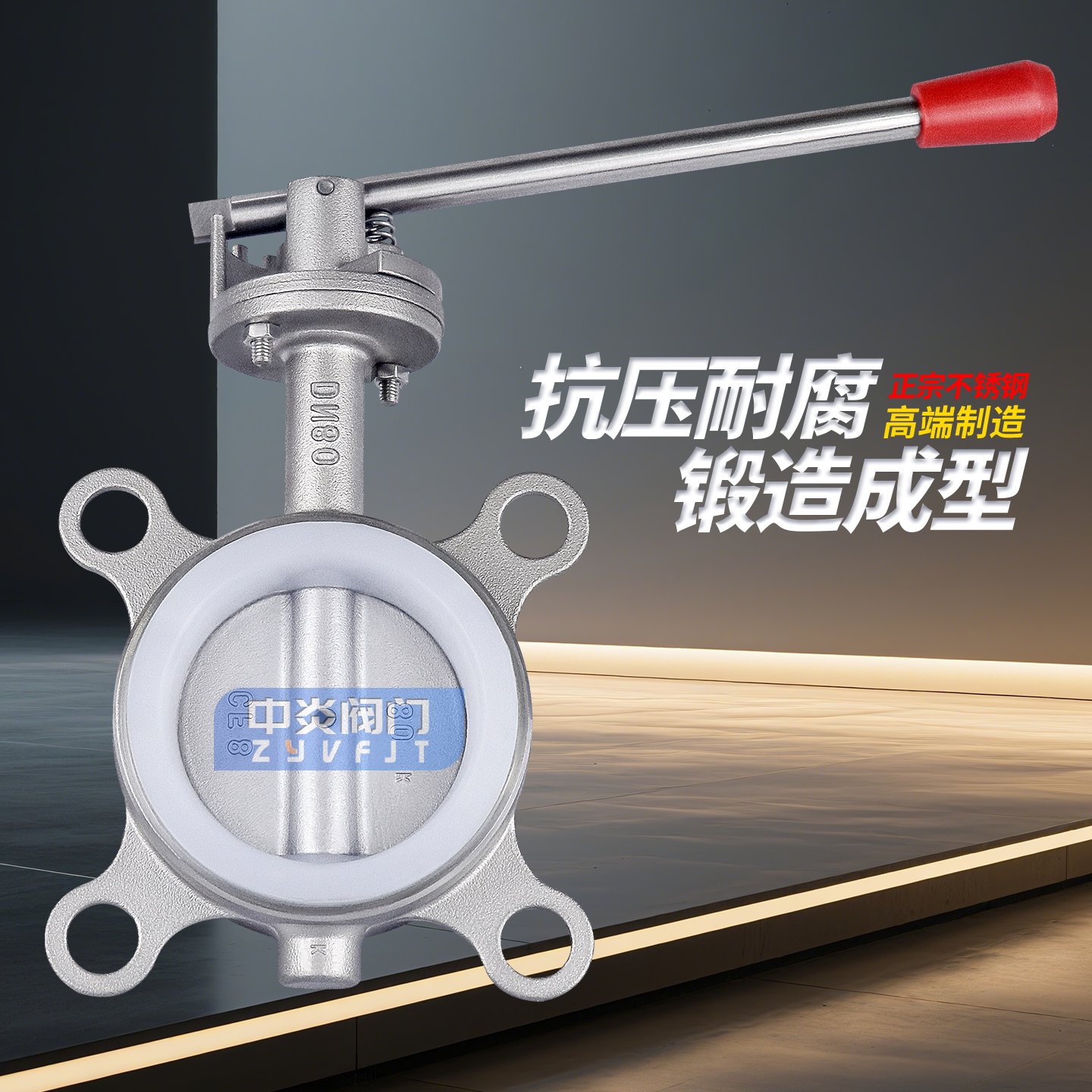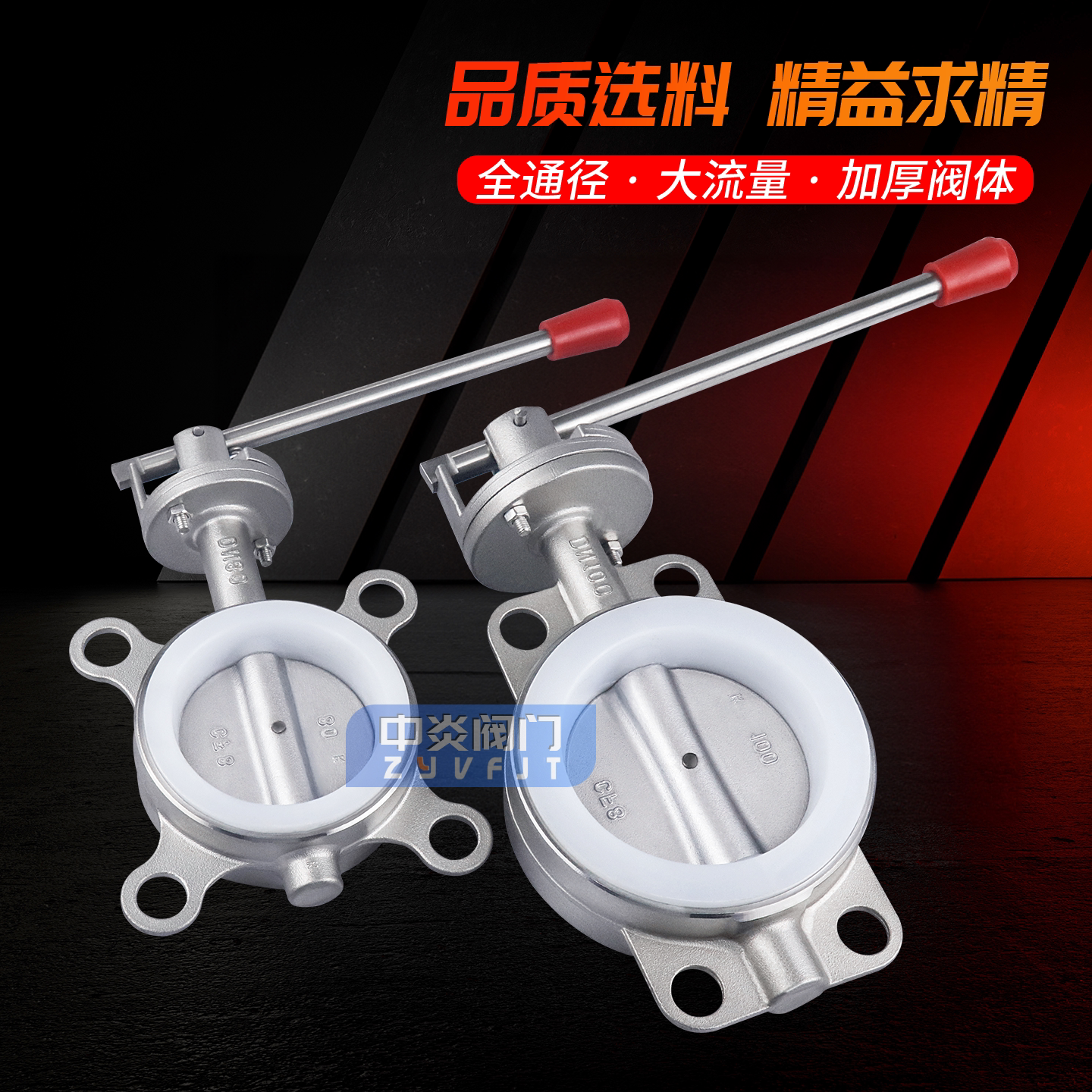 📚 201/整套304不锈钢对夹式D71X-10/16P手动蝶阀DN40-400软密封蝶阀