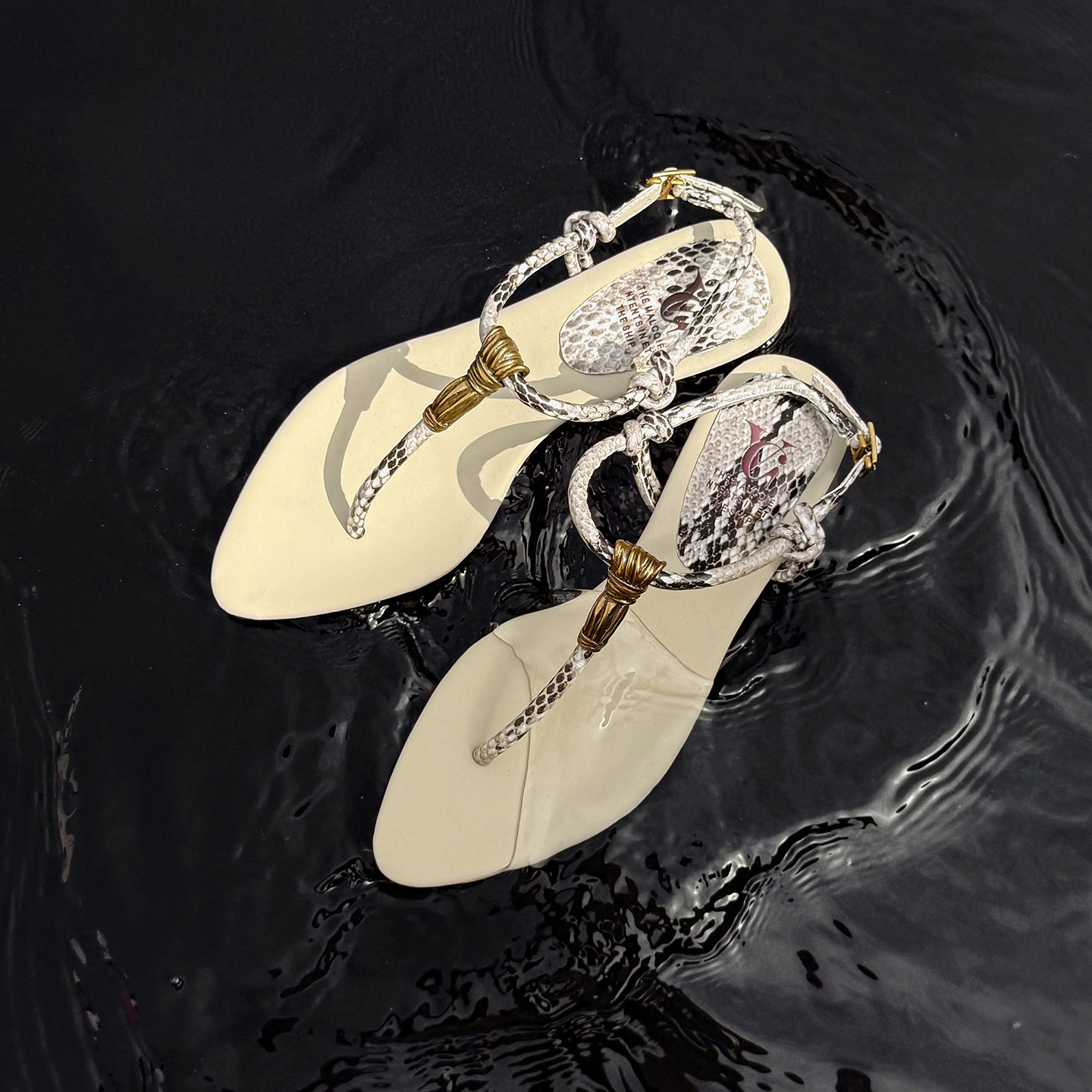 📚 轻熟小众 Literary蛇纹T字带夹趾凉鞋女夏季粗跟金属装饰女鞋凉拖