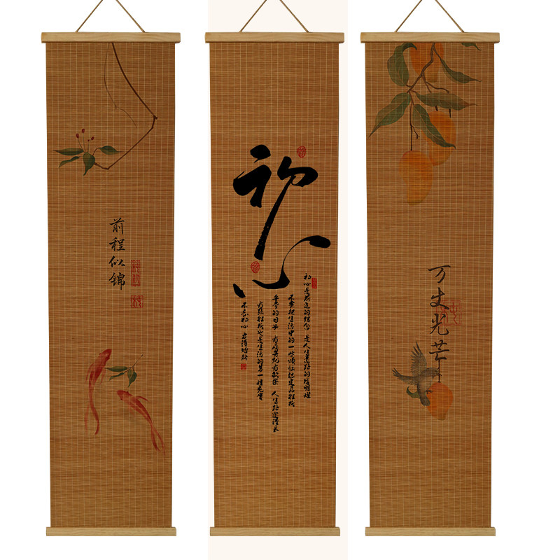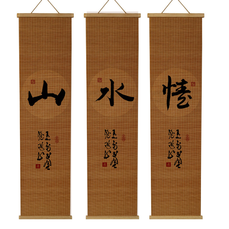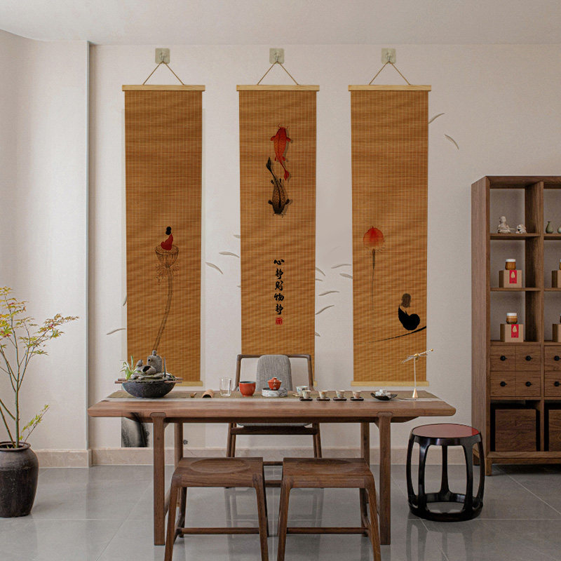 📚 竹编工艺新竹帘子免打挂画客厅玄关装饰画卧室茶室书房壁画