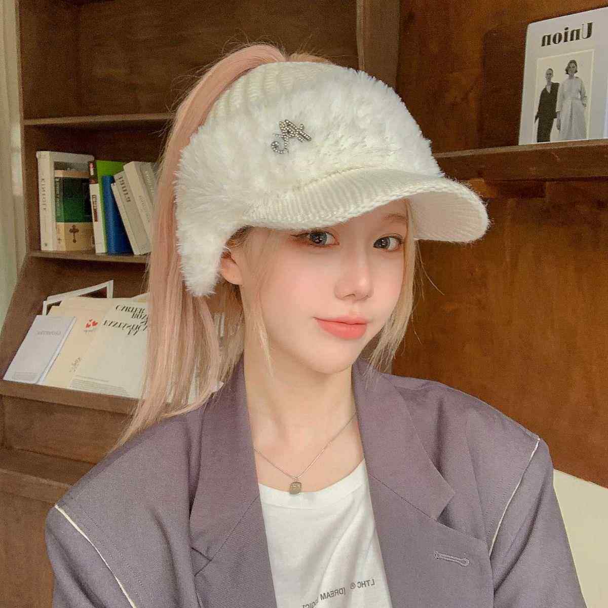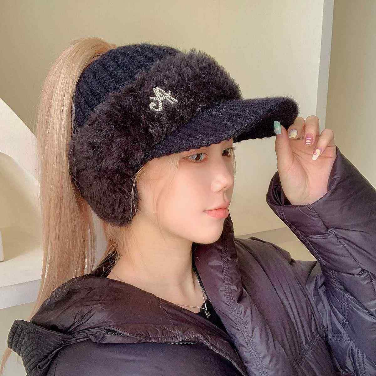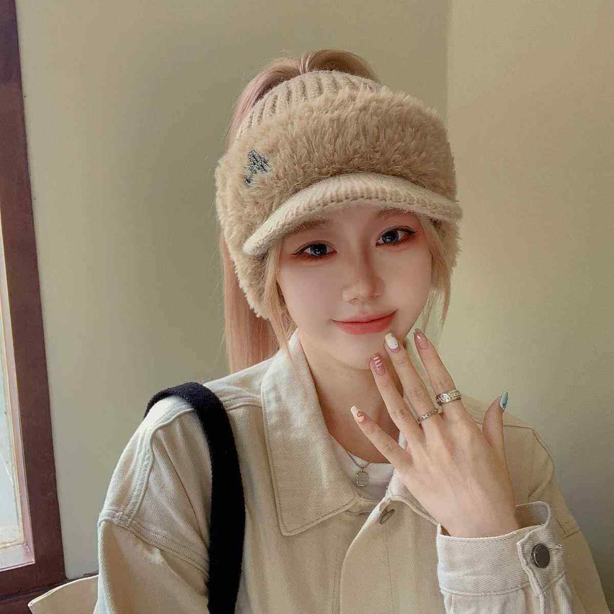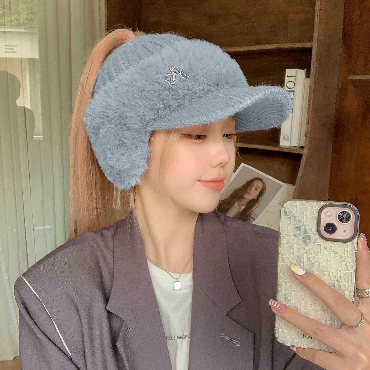 📚 秋冬保暖护耳针织鸭舌帽子2024年新爆款女士韩版冬季空顶棒球帽潮