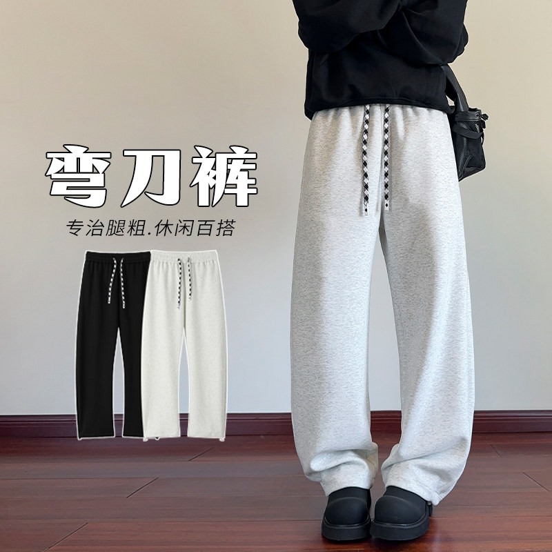 📚 花灰色弯刀卫裤男款春秋高级感垂感镰刀裤美式潮牌宽松直筒裤子