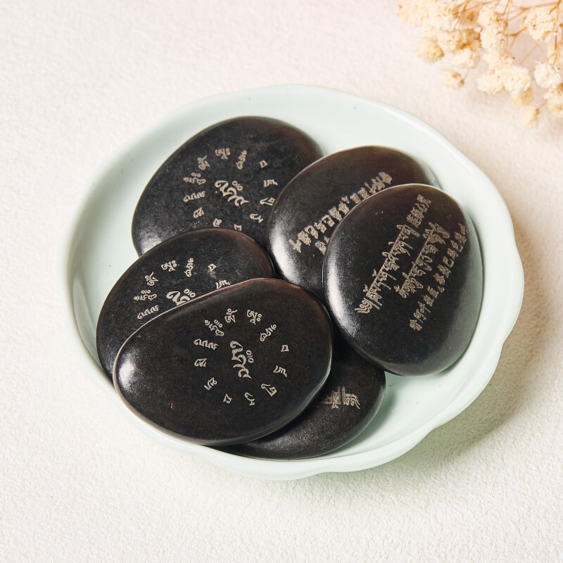 📚 结缘莲师心咒玛尼石天然玛尼石手工莲花生大士心咒双面雕刻