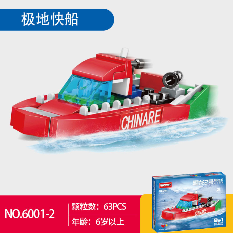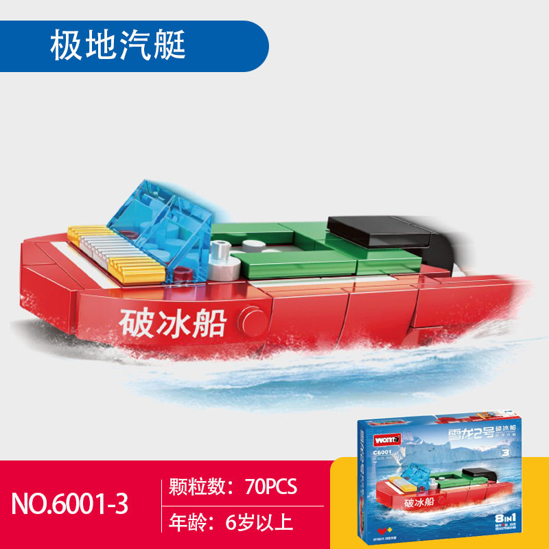 📚 沃马积木中国雪龙2号破冰船极地科研模型拼装小颗粒儿童玩具礼物