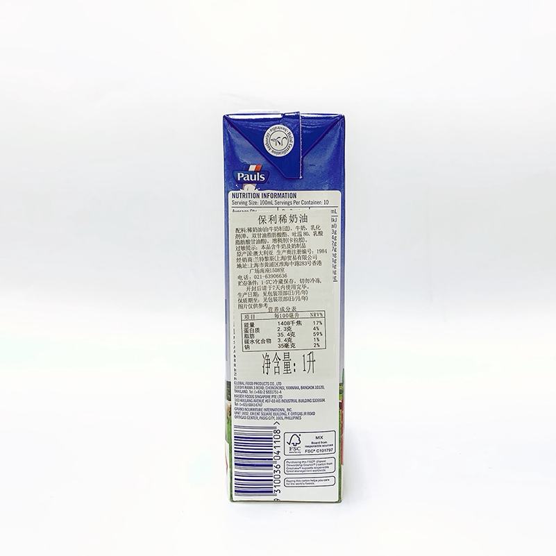 📚 澳大利亚进口保利稀奶油1L*12瓶动物性蛋糕裱花奶油烘焙原料家用