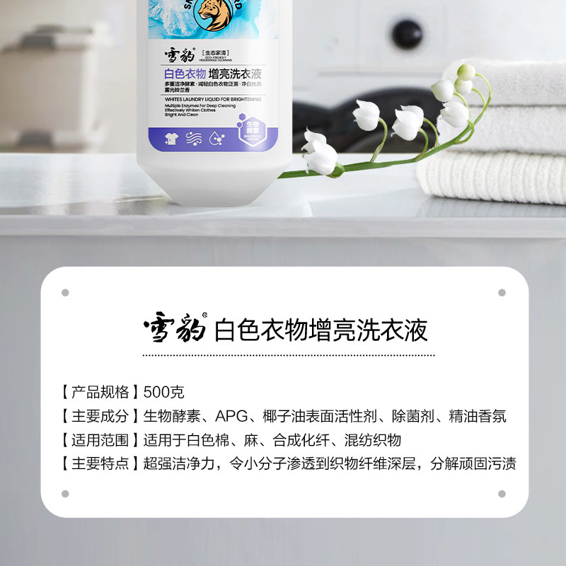 📚 雪豹白色浅色衣物专用洗衣液衬衫白T恤泛黄增亮留香家庭装500g