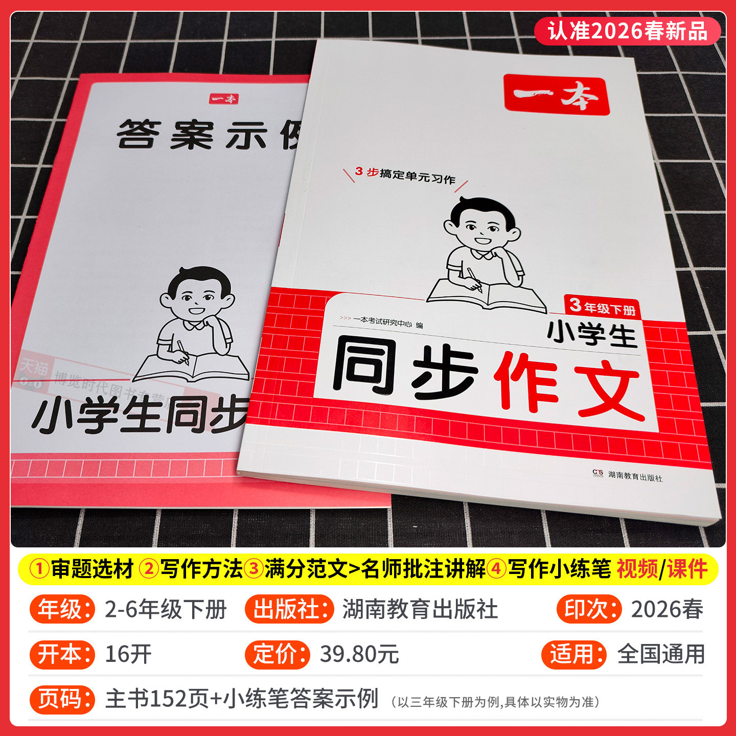 📚 2026一本同步作文二三四五六年级下册语文作文书人教版小学作文同步课本单元写作技巧方法素材积累小学生作文满分范文大全