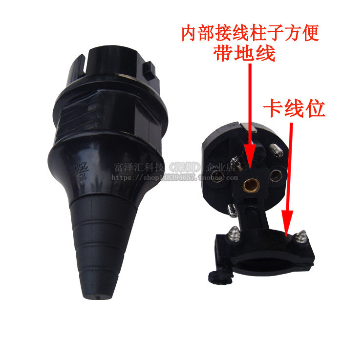 📚 法式电源插头16A250V德欧式可拆接线式插头带CE认证欧标两圆插头