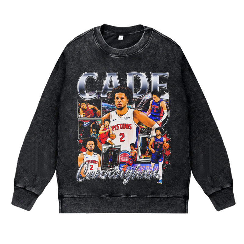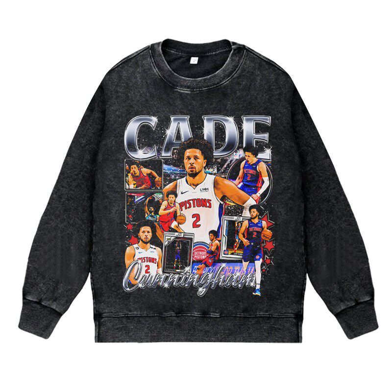 📚 美式篮球运动球星活塞队坎宁安复古vintage高街水洗圆领套头卫衣