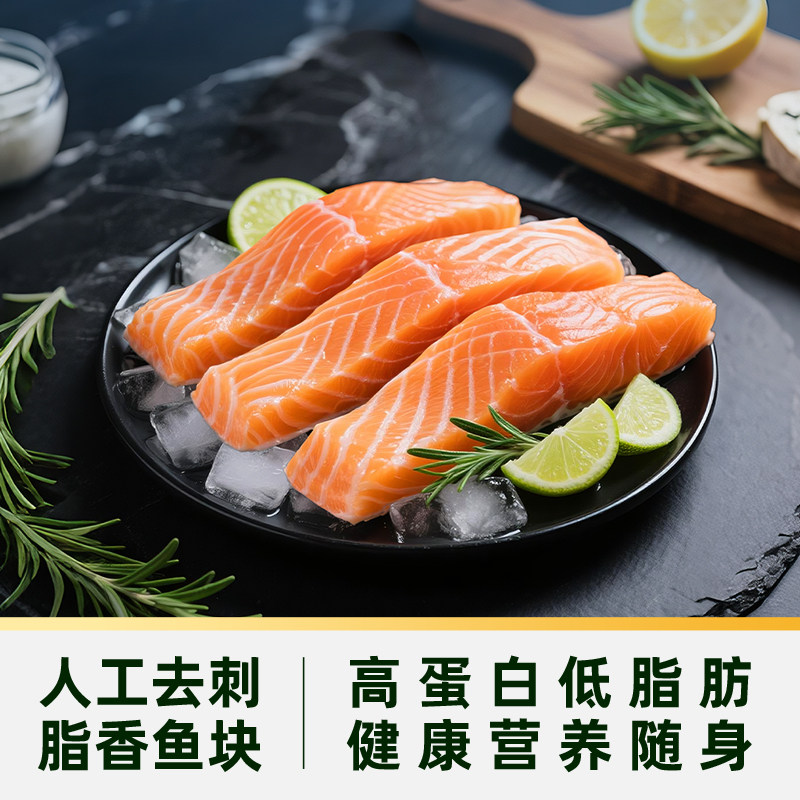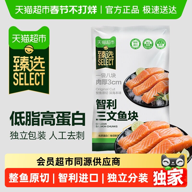 📚 臻选智利进口冷冻三文鱼块带皮去骨去刺大西洋鲑鱼1kg