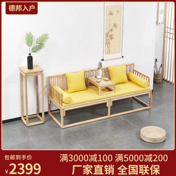 📚 新中式实木罗汉床禅意白蜡木客厅沙发榫卯结构免漆民宿贵妃榻定制