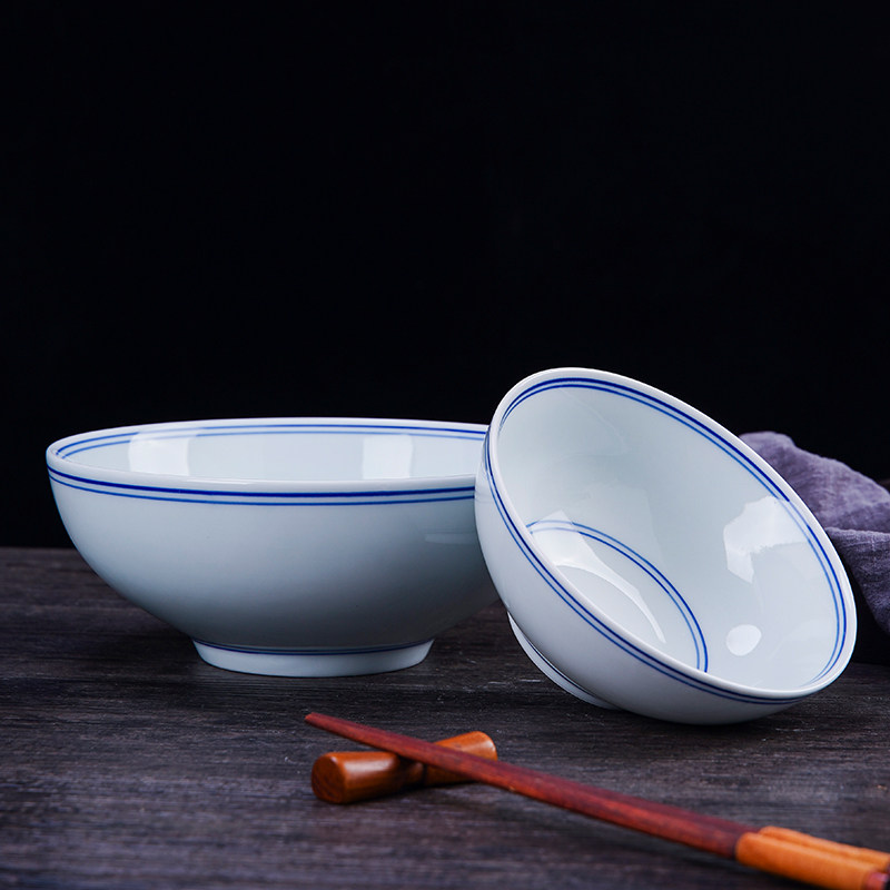 📚 蓝边碗菜碗面碗混沌碗粥碗厚碗不烫手碗景德镇陶瓷餐具釉下彩家用