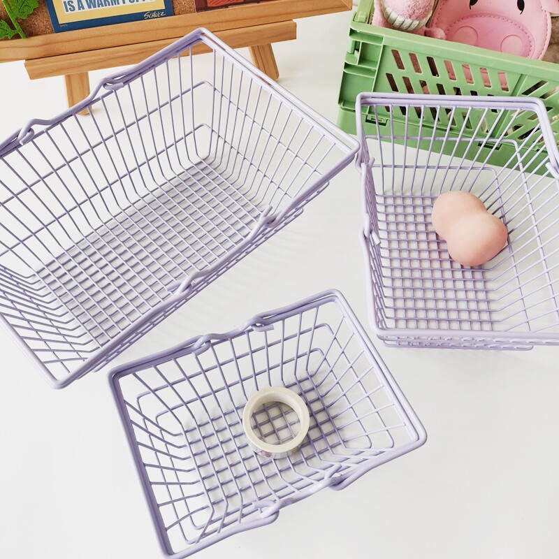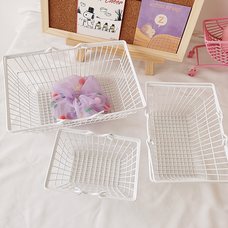 📚 ins少女心粉色蝴蝶结铁艺迷你购物篮收纳篮桌面摆件摆拍道具包邮