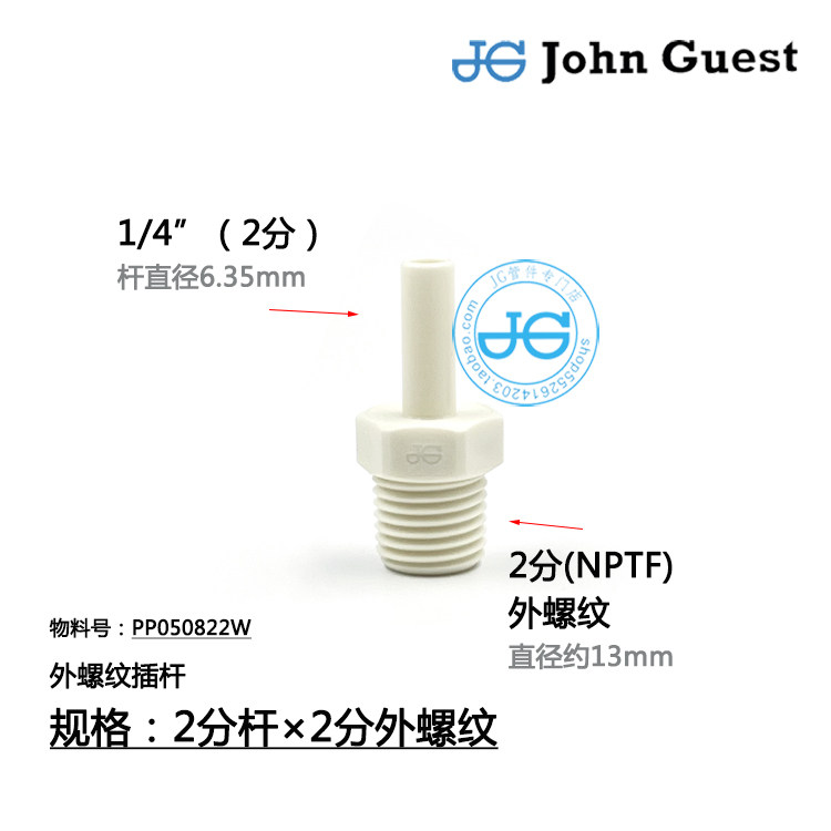 📚 插杆插栓外牙外螺纹 PP材质 英国原装进口JOHN GUEST快接快插配件