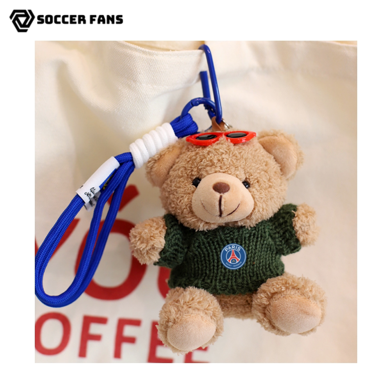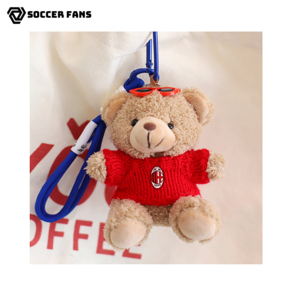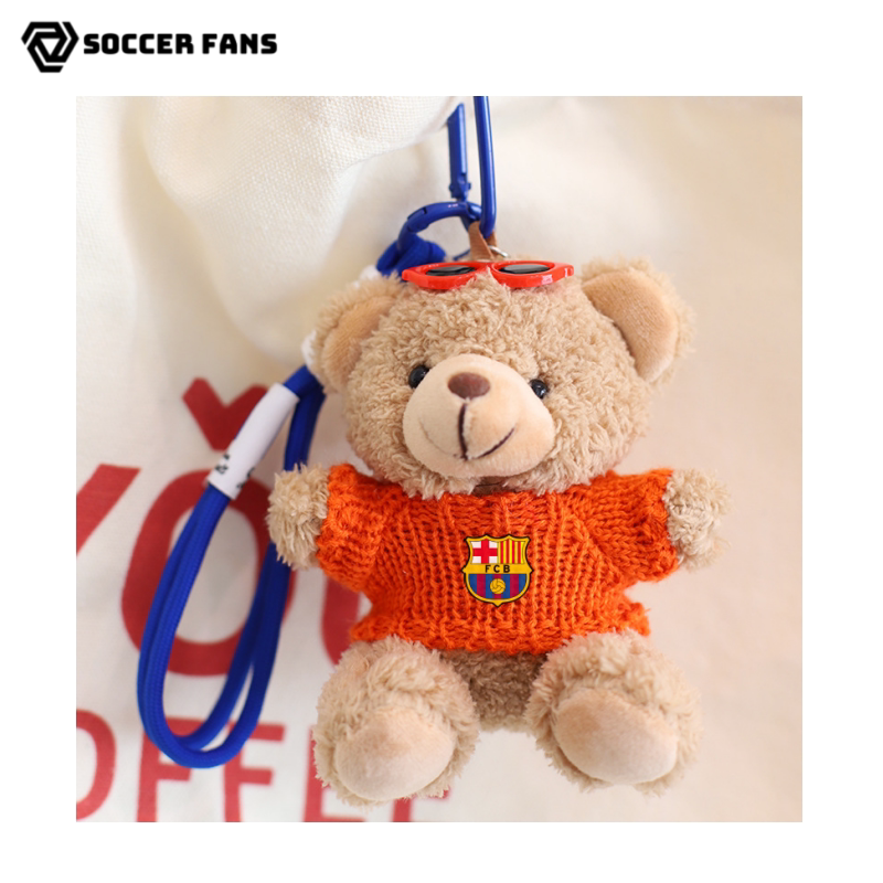 📚 足球周边挂件AC米兰巴萨皇马周边毛绒小熊玩偶纪念品队徽钥匙扣