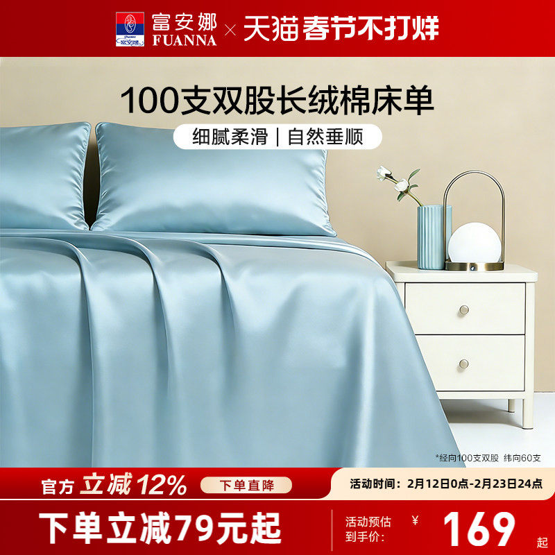 📚 富安娜家纺100支长绒棉单件床单纯棉全棉单件简约贡缎床单床品