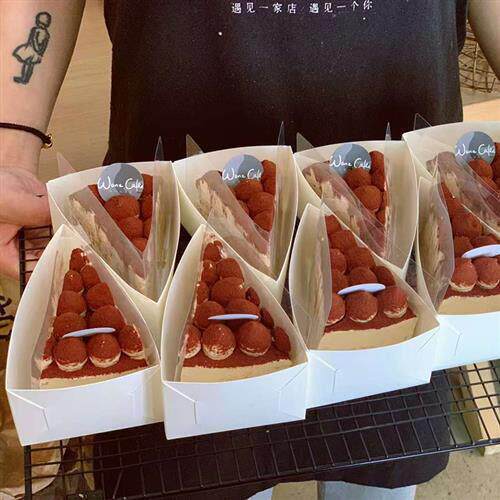 📚 三角切块打包盒6寸8寸千层切件盒子慕斯蛋糕包装盒三角形包装底托