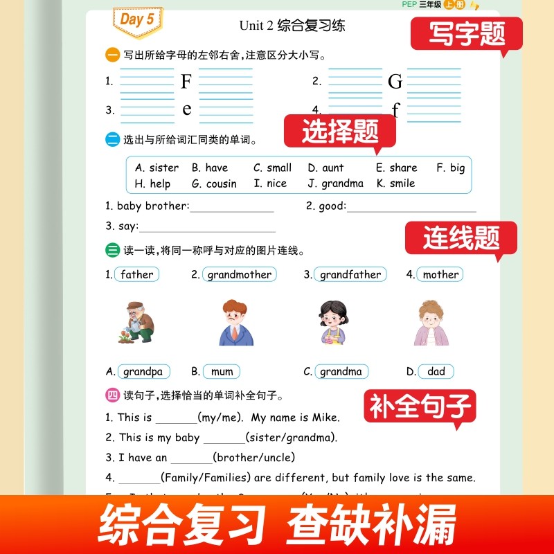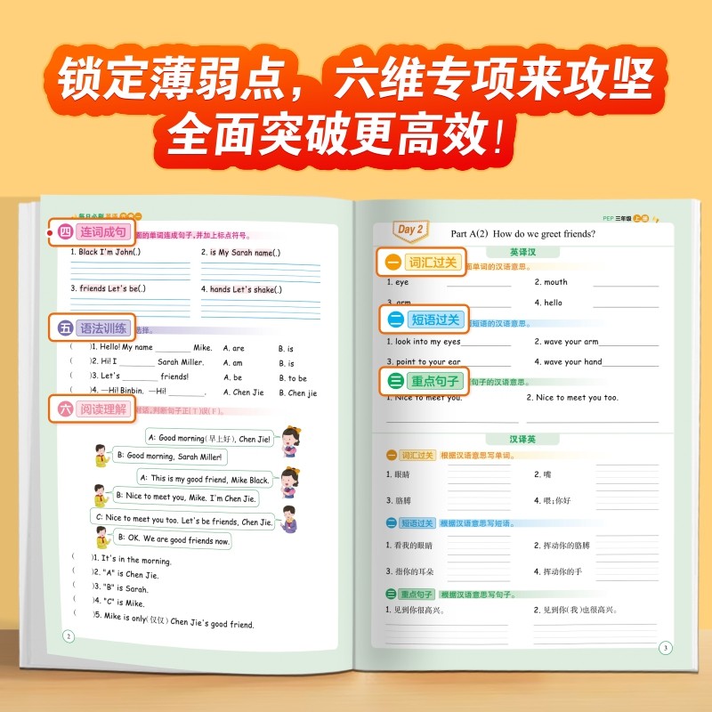 📚 小学3-6年级上册英语六合一必刷题专项训练三四五六年级英语阅读理解与完形填空小学英语单词语法专项训练英译汉译英短语同步练习