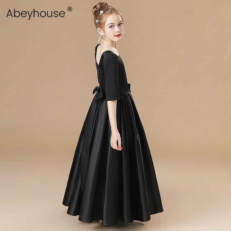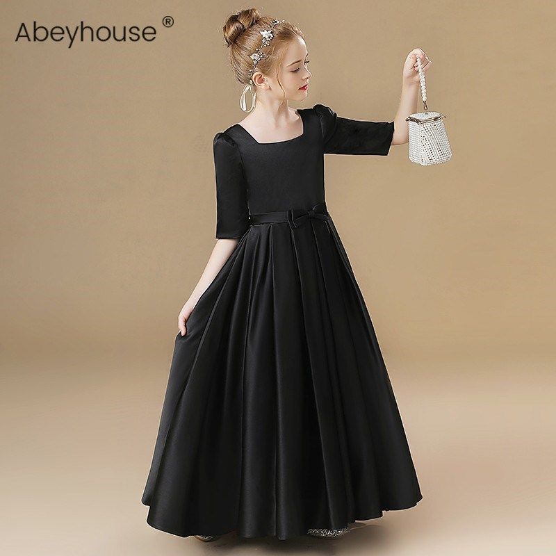 📚 女童黑色钢琴演出服主持服绑带可调节中大童晚礼服儿童乐团演奏服