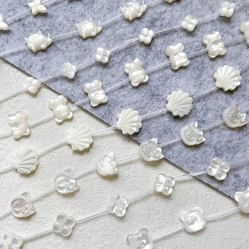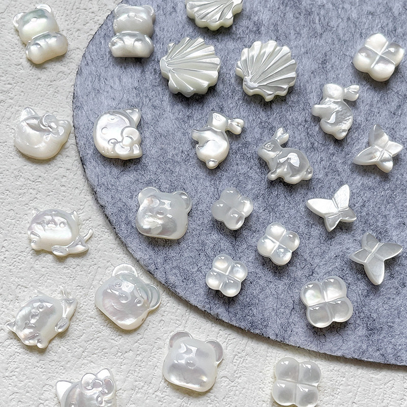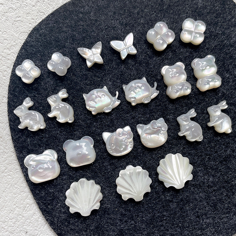 📚 DIY饰品配件天然贝壳贝母可爱玉兔小猫直孔珠手链项链耳饰配件