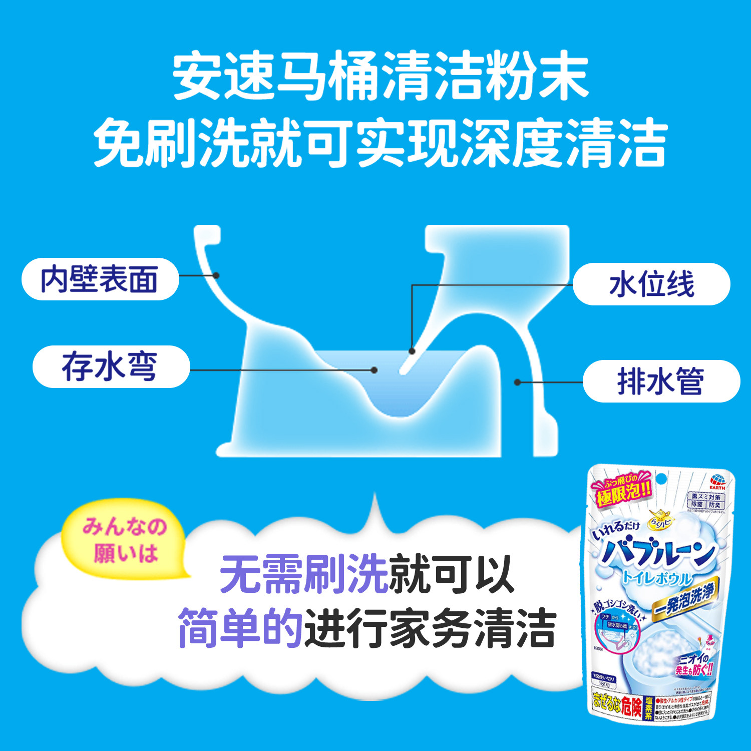 📚 日本安速earth马桶强力发泡泡粉末清洁剂厕所坐便除尿垢顽固污渍
