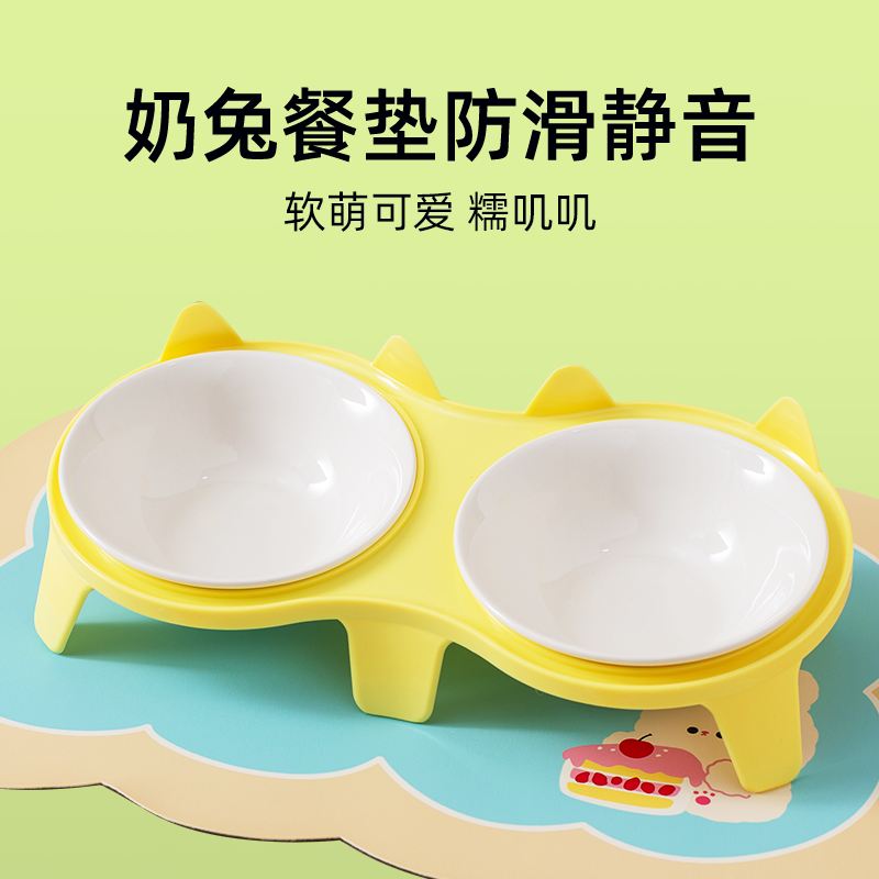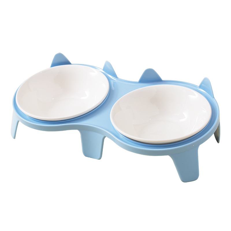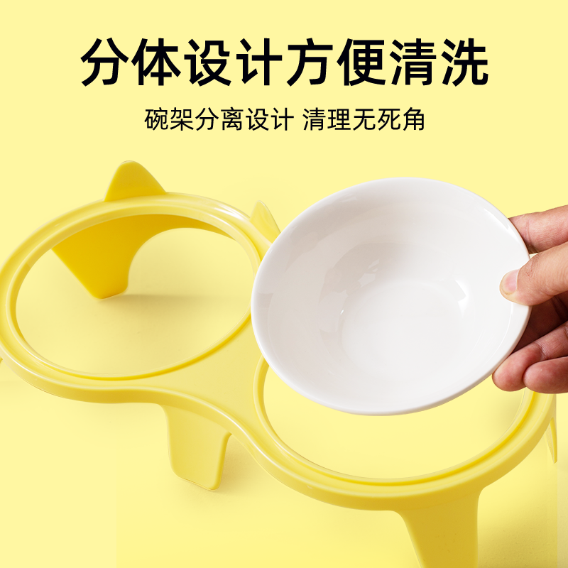 📚 猫碗陶瓷 猫食盆猫碗猫粮宠物碗双碗300mlx2护颈不黑下巴