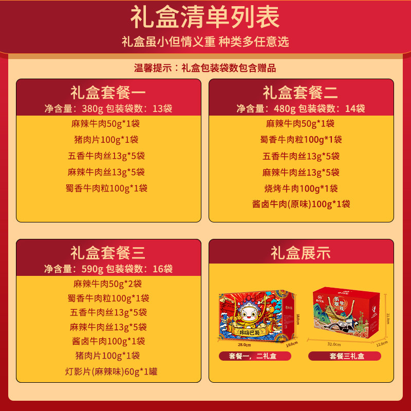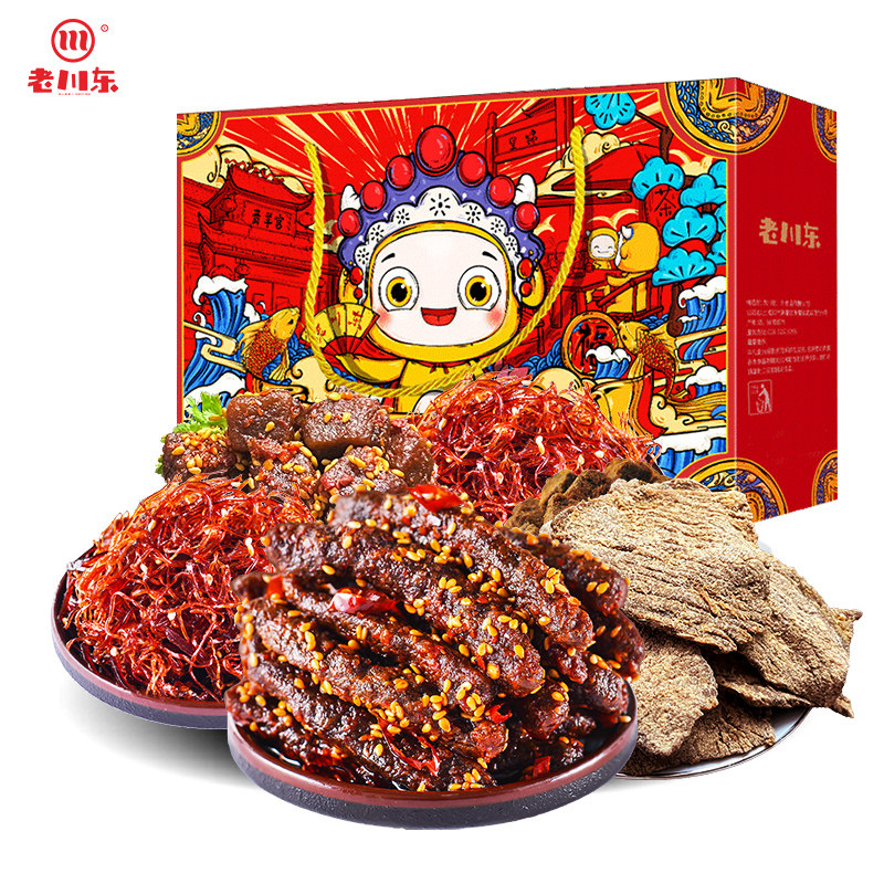 📚 老川东味嗨巴蜀礼盒590g四川特产牛肉干灯影丝小吃零食年货大礼包