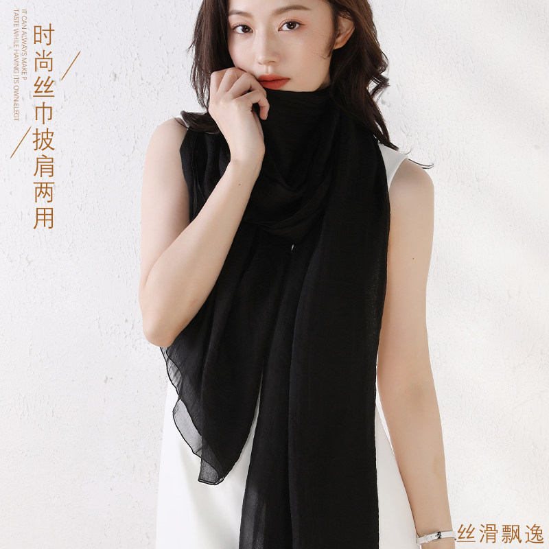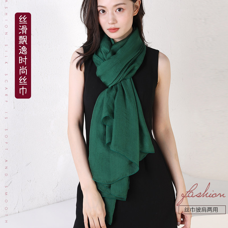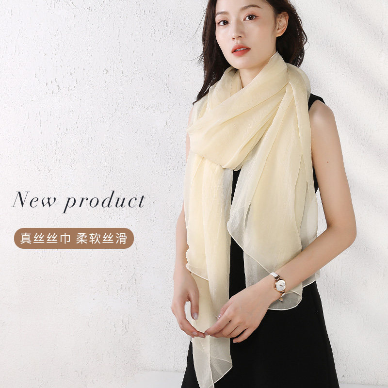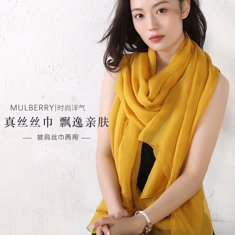 📚 品牌杭州丝绸长款纯色丝巾百搭丝滑柔软真丝围巾高档姜黄色女款