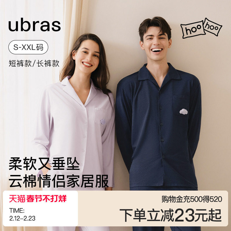 📚 ubras云棉家居服情侣套装长袖长裤带胸垫睡衣男女士可外穿秋冬季