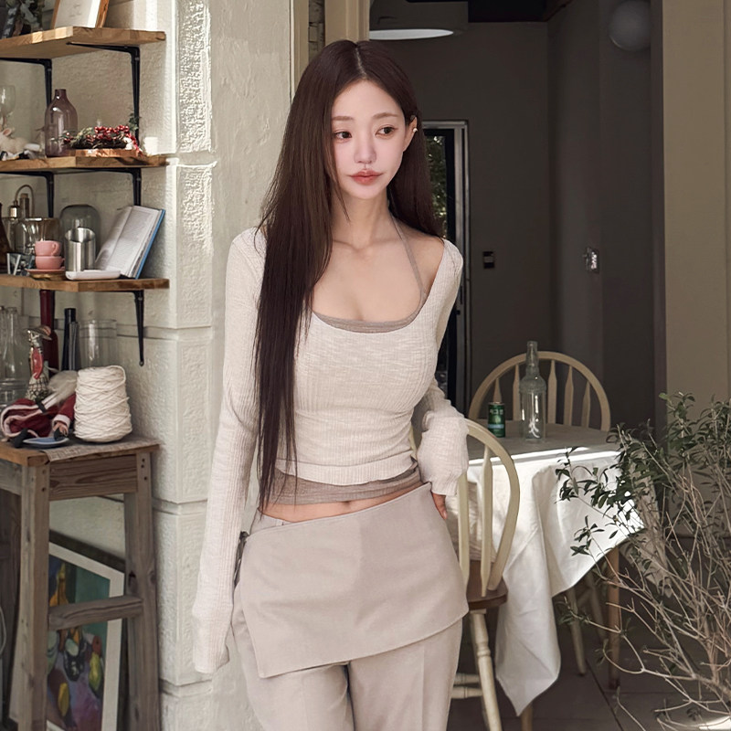 📚 kindame罗纹长袖T恤女性感芭蕾风早秋纯欲打底上衣TS26S0513