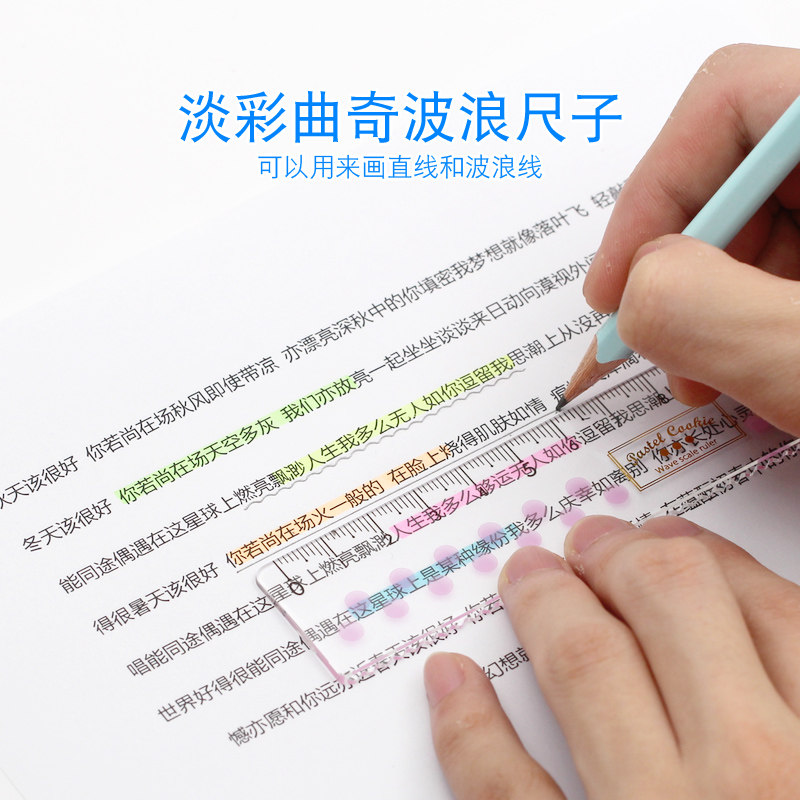 📚 日本国誉WSG-CLC15-1带波浪尺套尺装直尺波形刻度淡彩曲奇星空