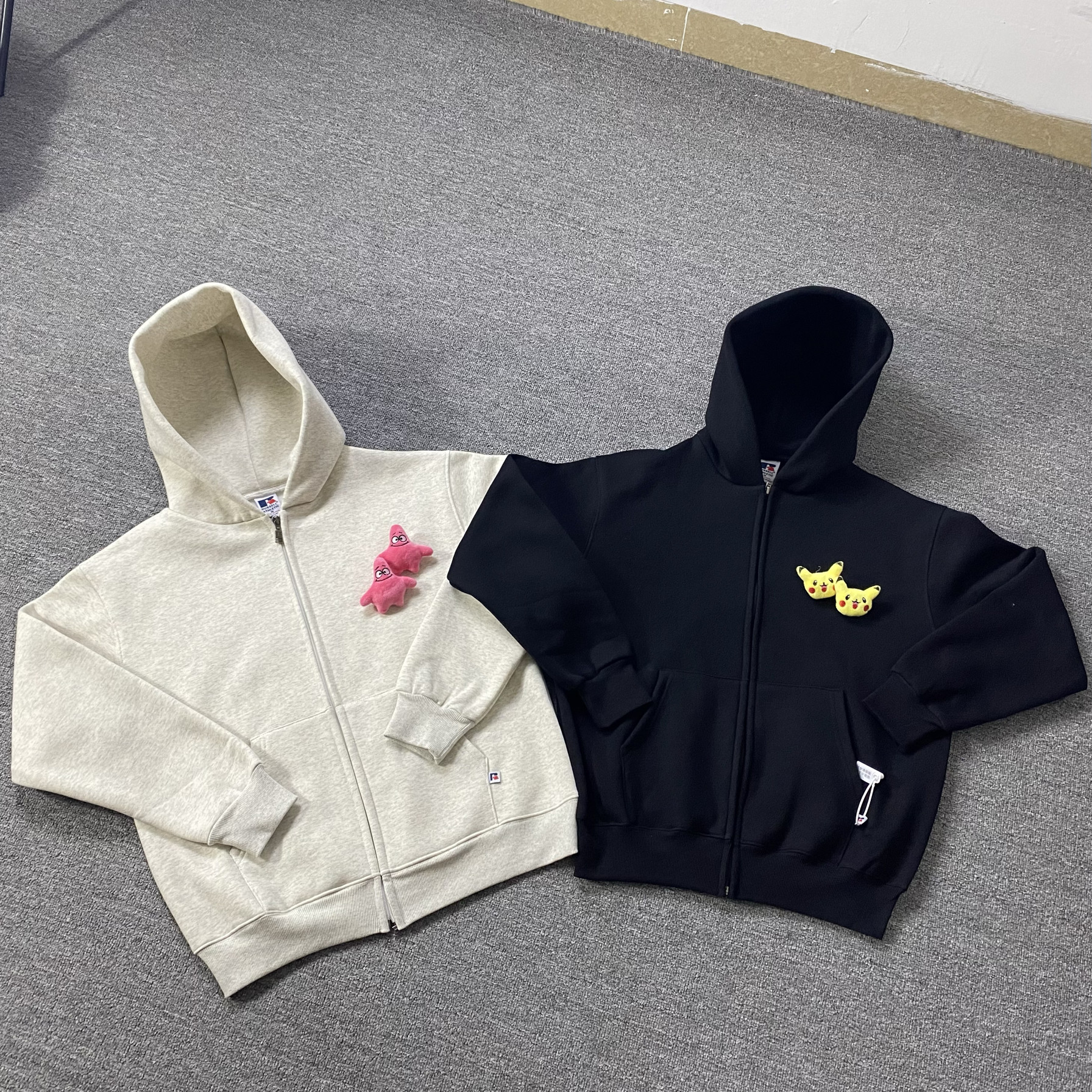 📚 罗素外套拉链卫衣黑灰抓绒vtg开衫boxy短款cleanfit男vibe卫衣