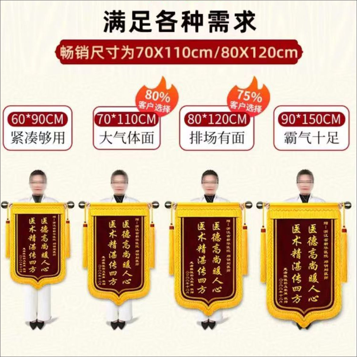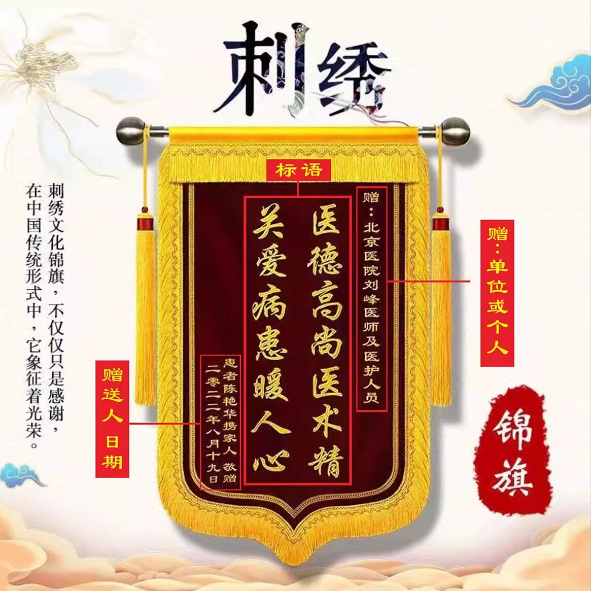 📚 刺绣锦旗定制定做金丝绒赠医生护士感谢老师月嫂民警物业驾校教练