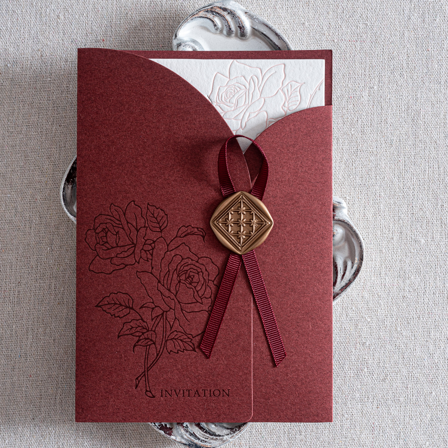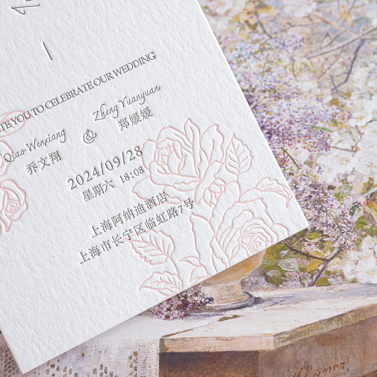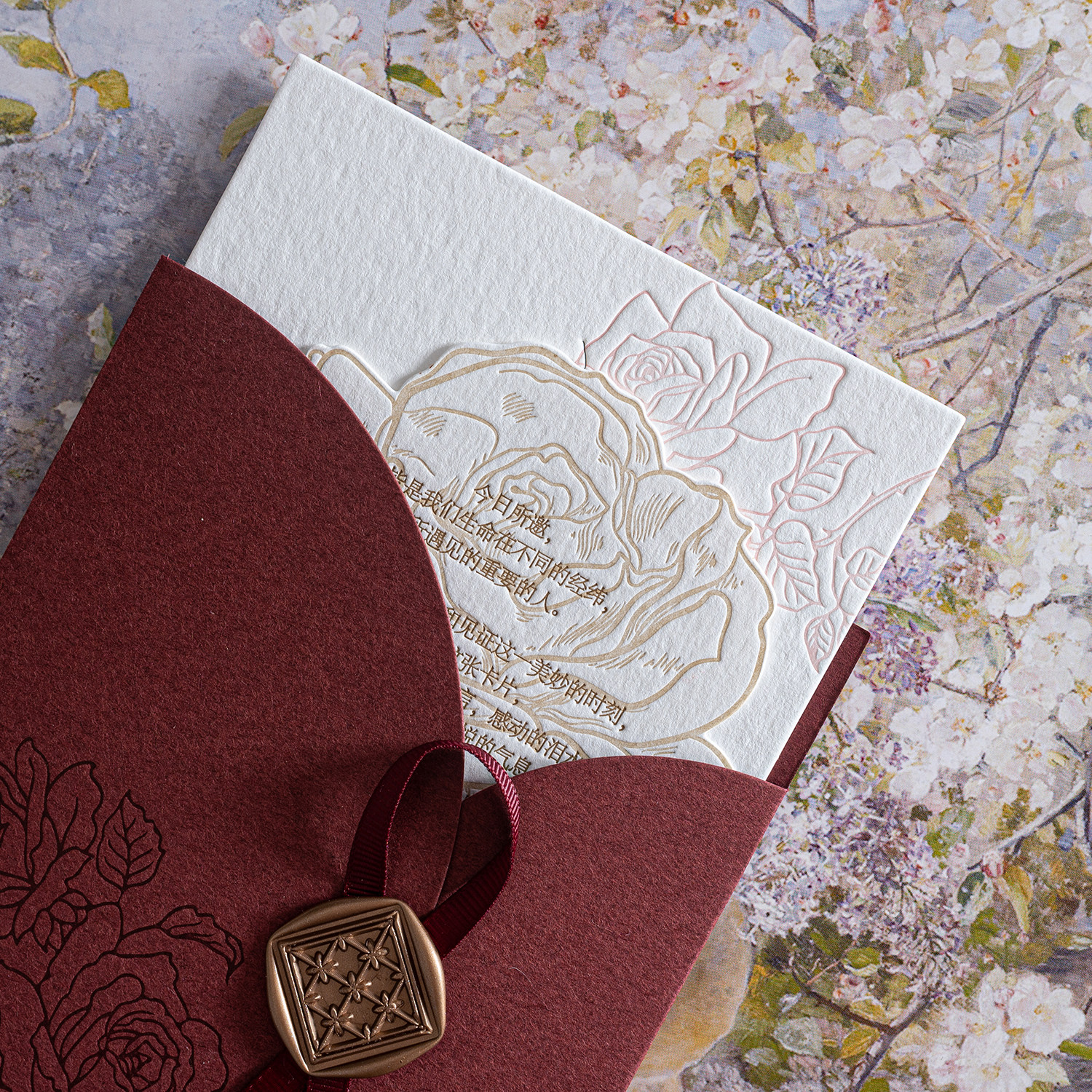 📚 美美喜品letterpress活版凹凸版棉纸结婚礼邀请函帖喜帖柬酒红色
