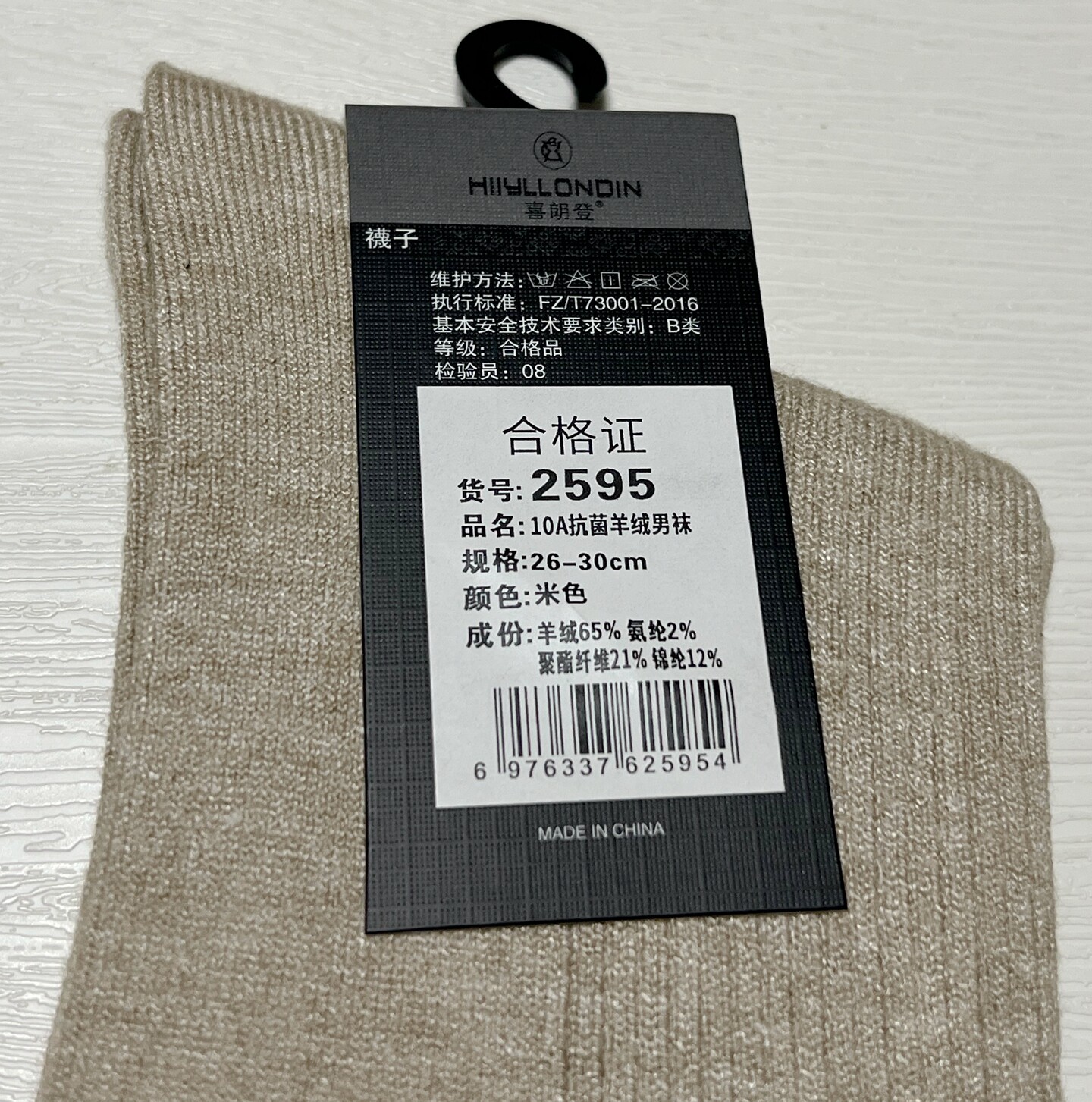 📚 喜朗登2595秋冬10A抗菌羊绒男袜保暖袜 2107中筒袜子纯色柔软舒适