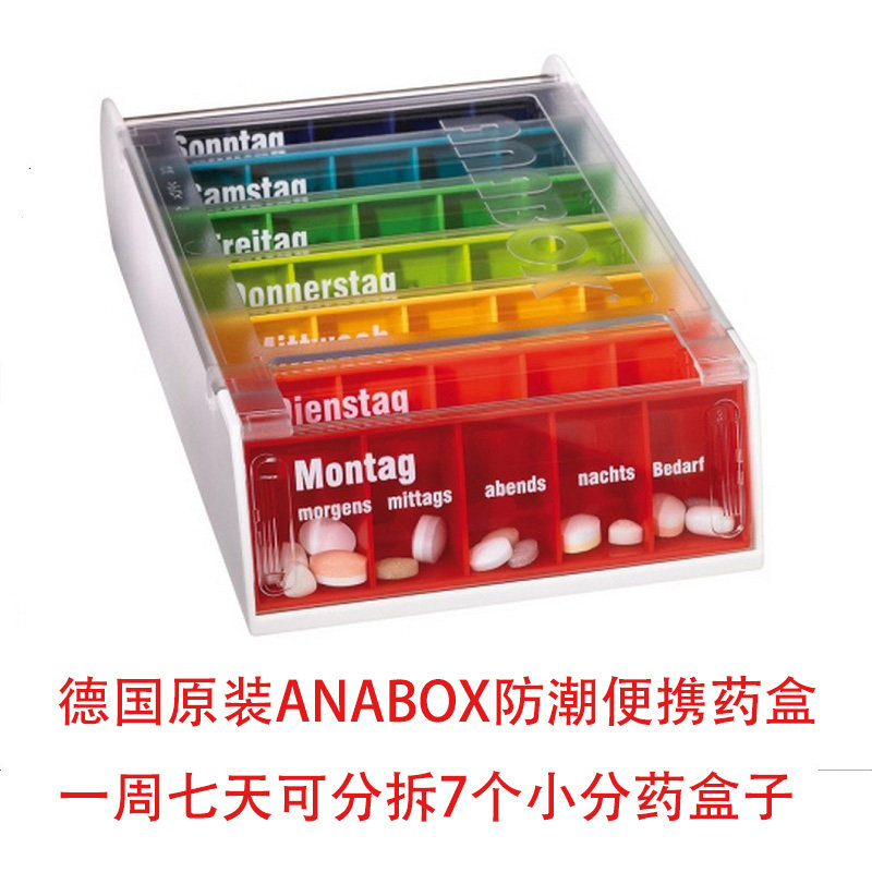 📚 现货德国原装ANABOX七天彩虹药盒 一日五次分隔防潮可分拆7个小盒