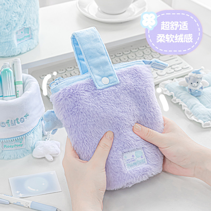 📚 RosyPosy柔设毛绒笔袋高颜值ins风文具笔袋女小学生2026新款大容量简约笔筒可爱毛茸茸竖翻文具袋立式铅笔袋