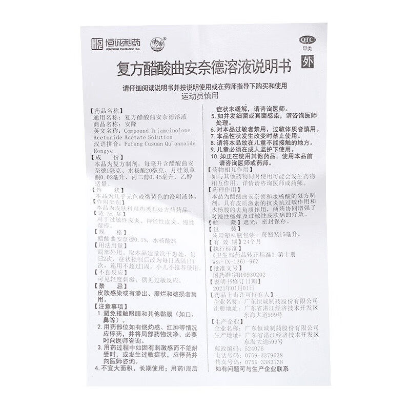 📚 安隆复方醋酸曲安奈德溶液15ml过敏性皮炎 神经性皮炎 湿疹