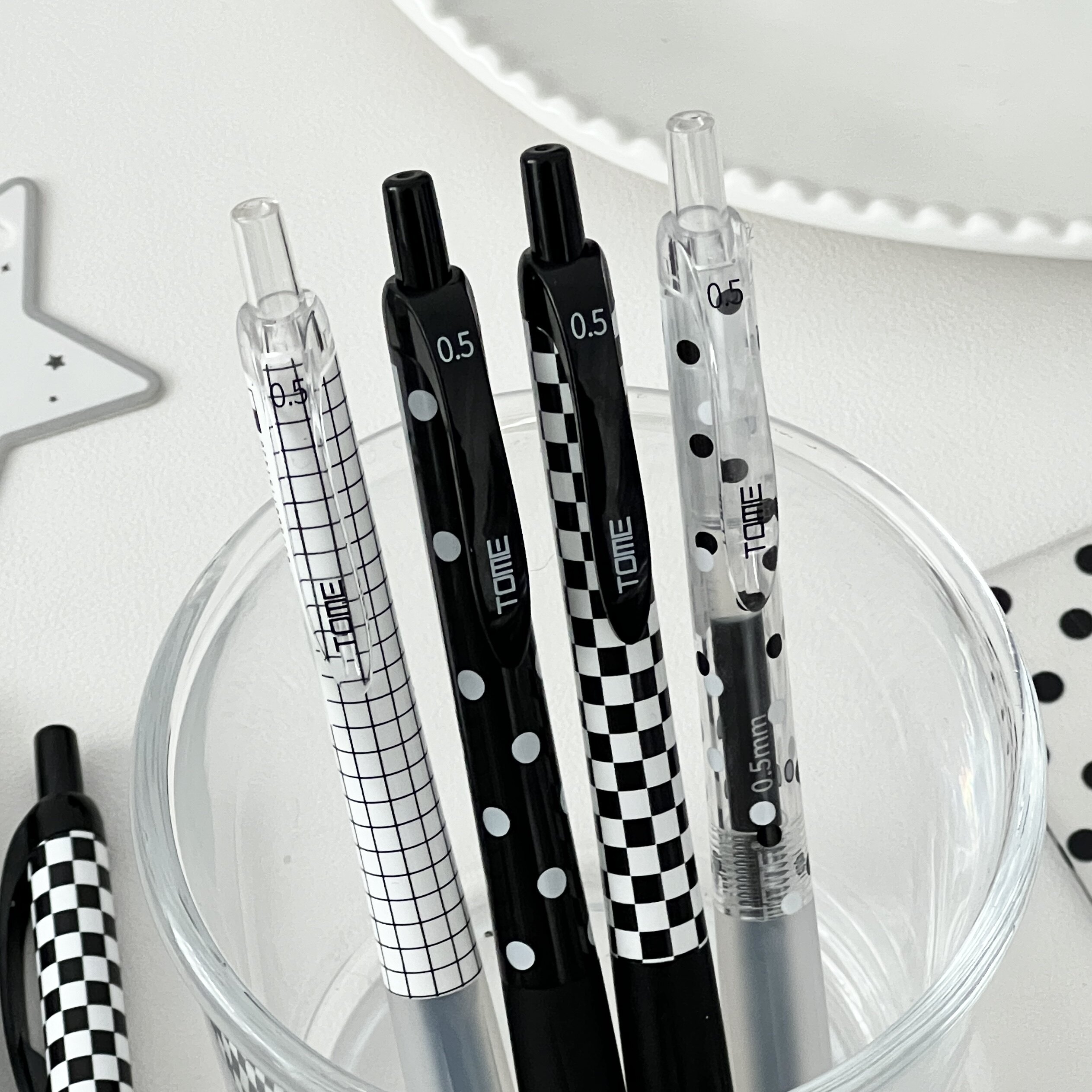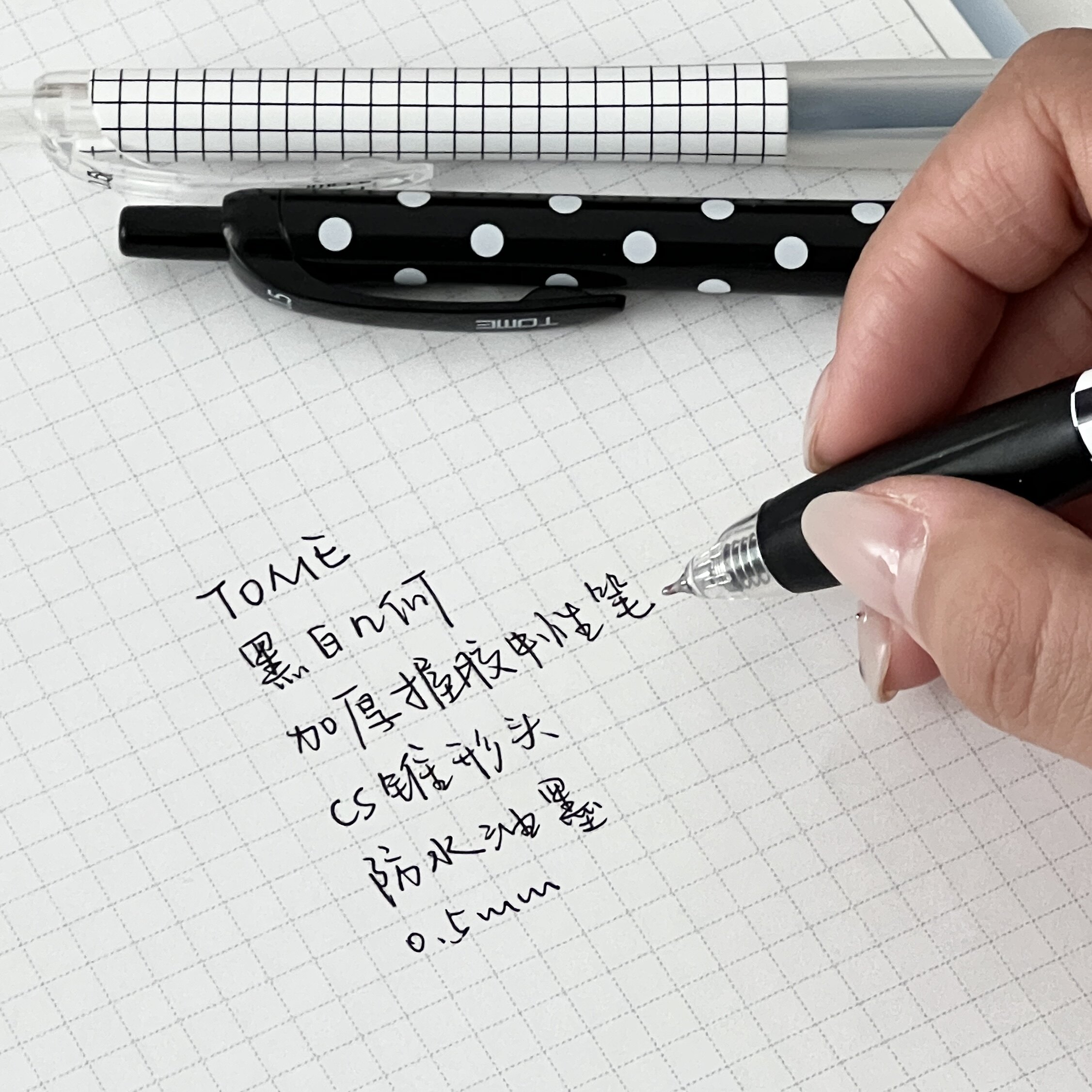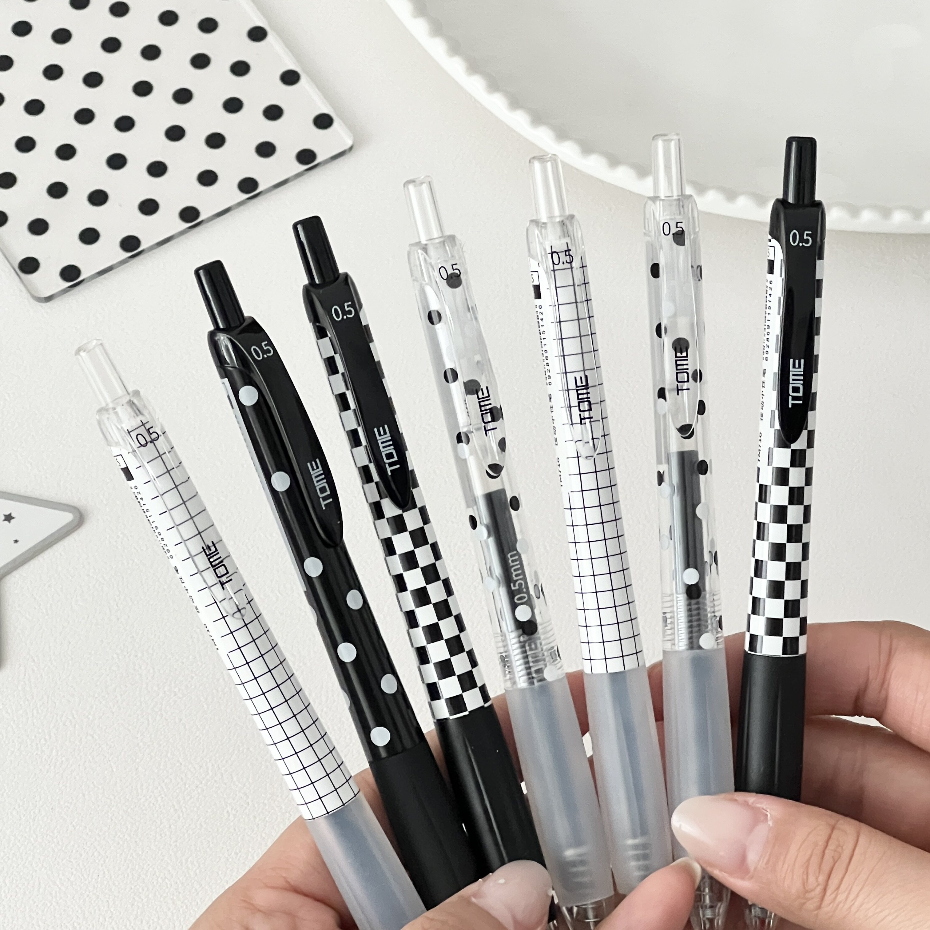 📚 图米TOME黑白波点按动中性笔高颜值刷题CS头0.5顺滑速干学生考试