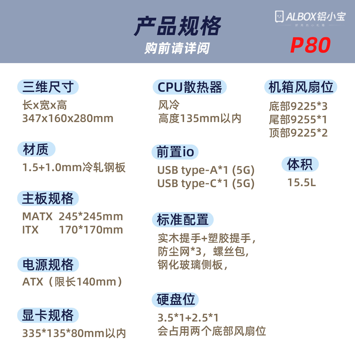 📚 ALBOX铝小宝P80便携A4手提迷你紧凑风冷ATX电源台式ITX小机箱MATX