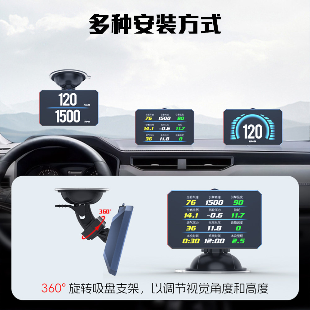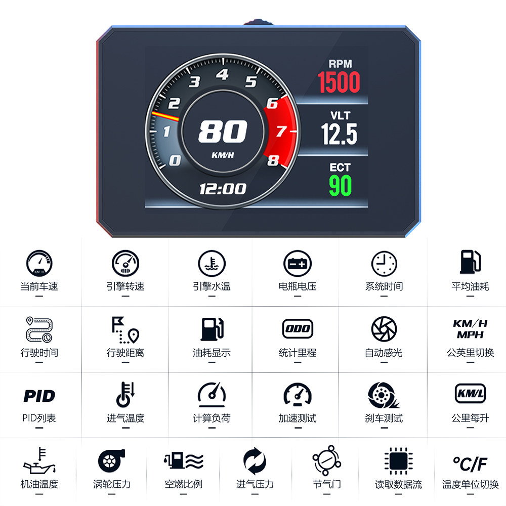 📚 汽车行车电脑OBD车载多功能油耗水温涡轮故障码检测仪表数显通用