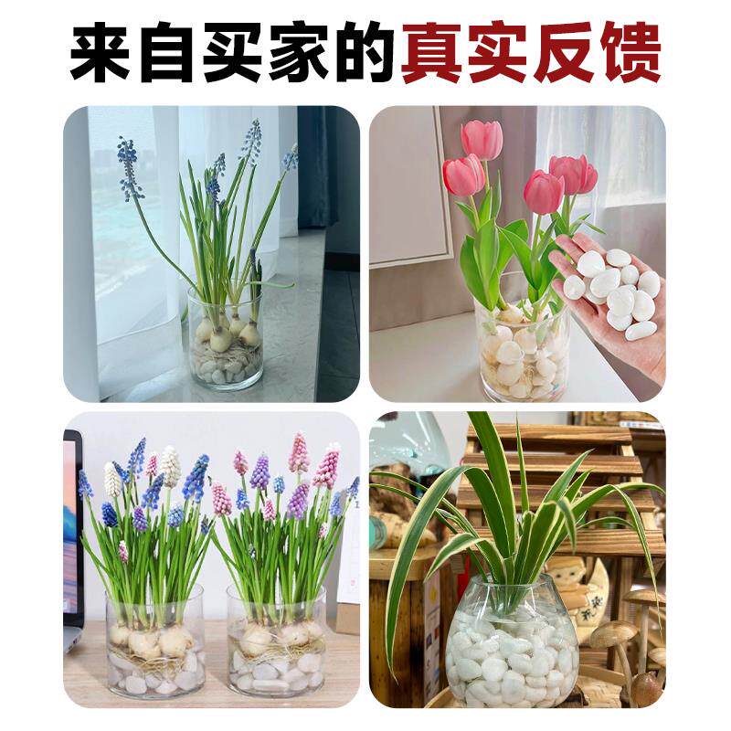 📚 水培石子颗粒白色天然鹅卵石雨花白色小石头造景陶瓷盆郁金香水仙
