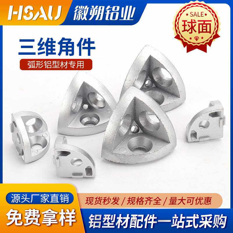 📚 三维角件连接件2020/3030/4040/4545R半圆弧形铝型材三通三维角件