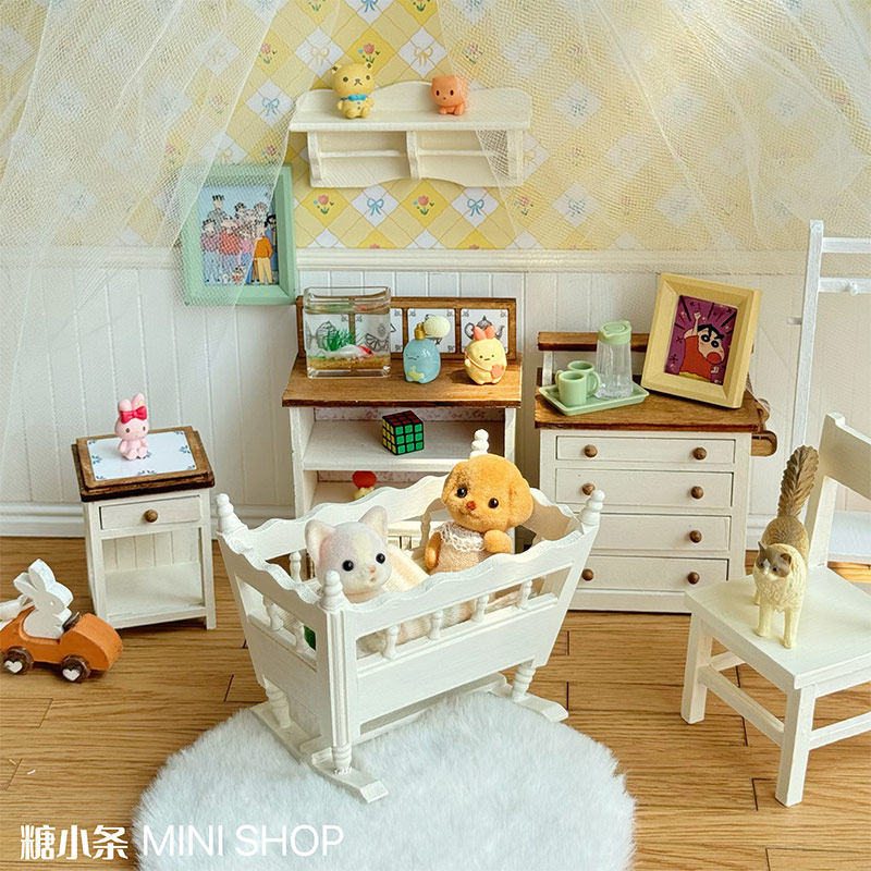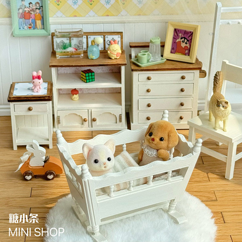 📚 糖小条12分婴儿床娃用家具微缩迷你模型柜子ob11娃屋场景道具