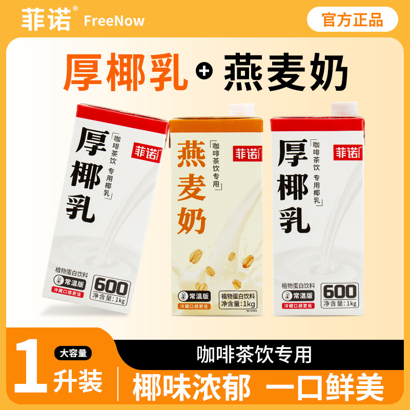 📚 菲诺厚椰乳生椰拿铁椰浆商用椰汁燕麦奶咖啡用伴侣椰奶家用带盖1L