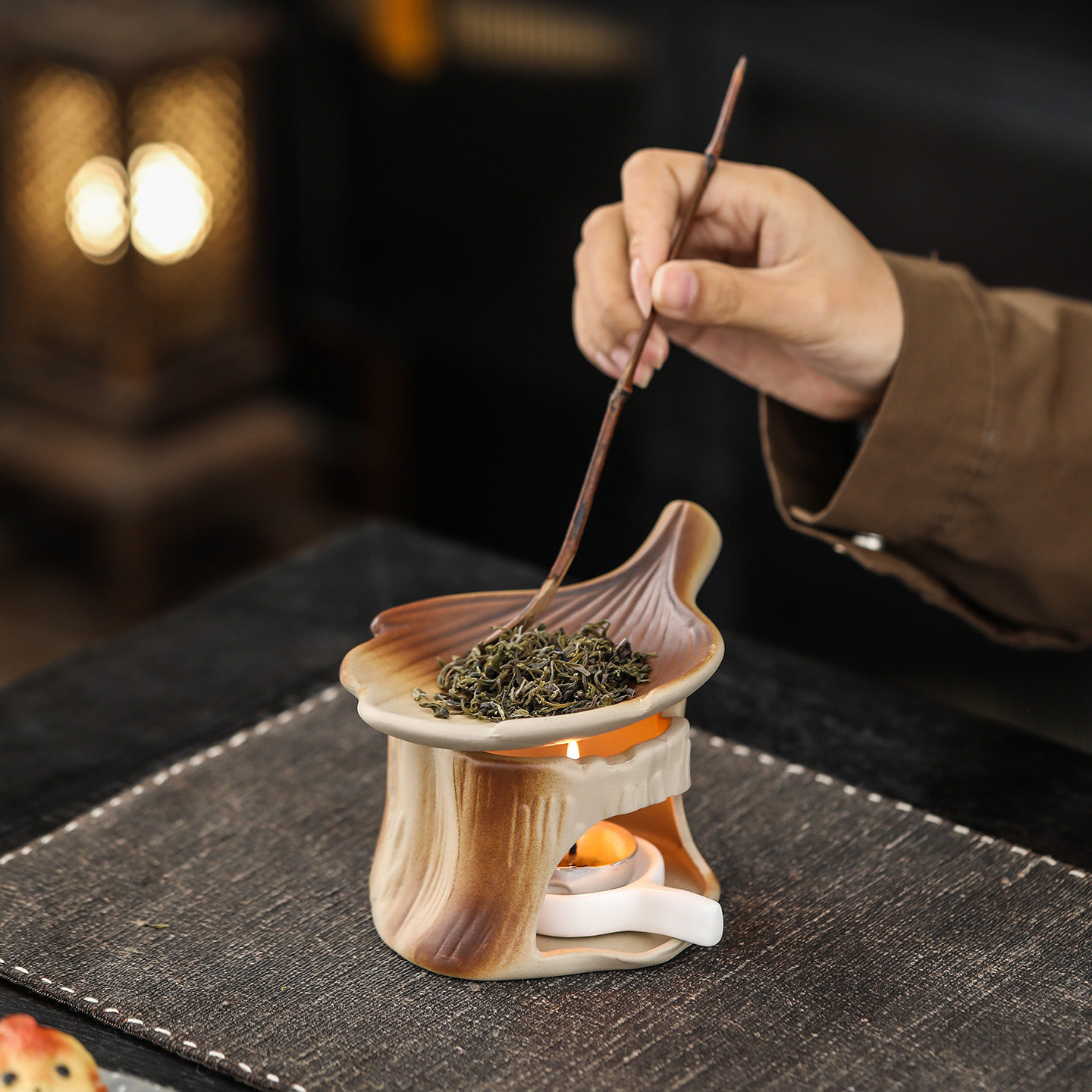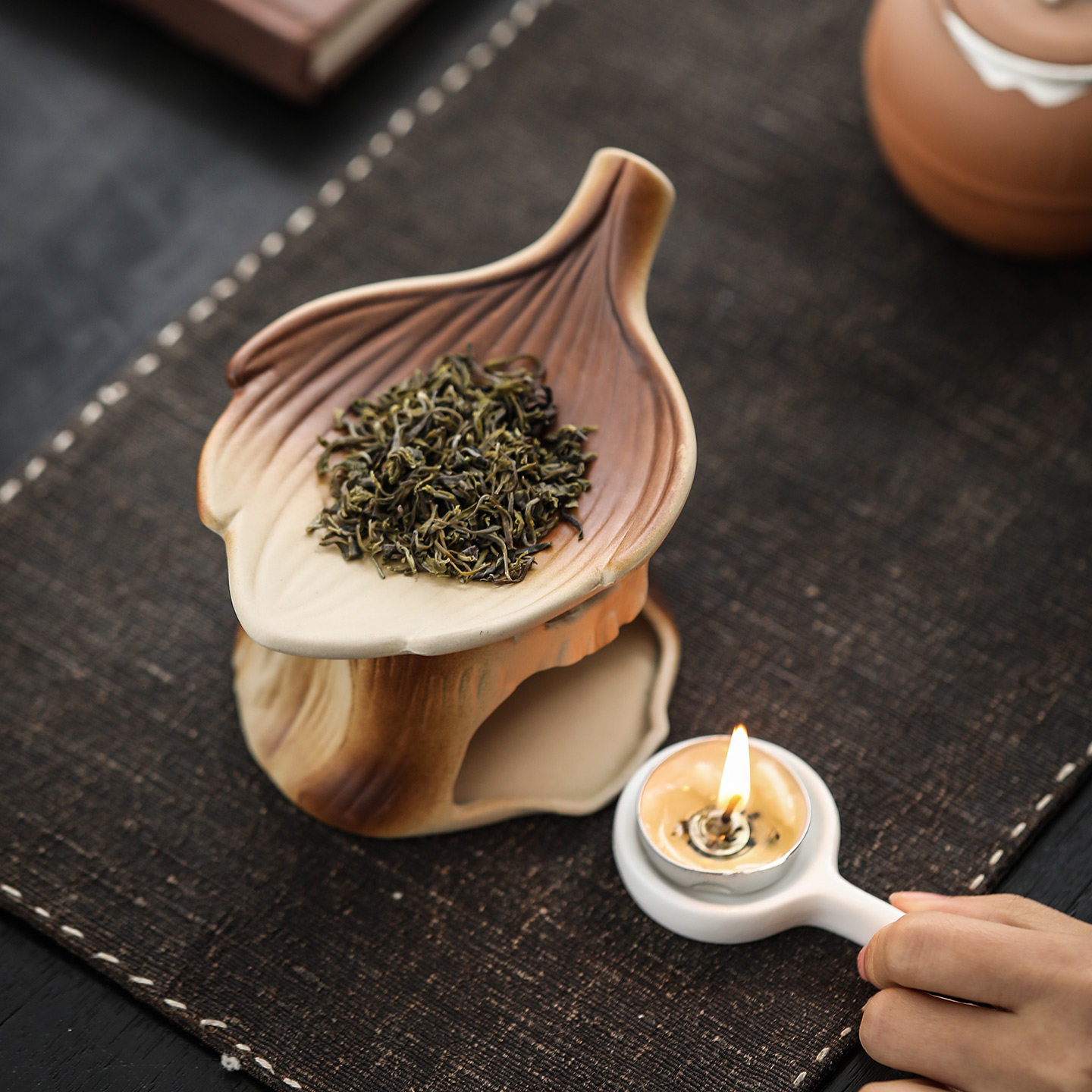 📚 粗陶日式焙茶炉陶瓷茶叶提香器蜡烛加热烤茶炉醒茶烘烤炉熏香炉